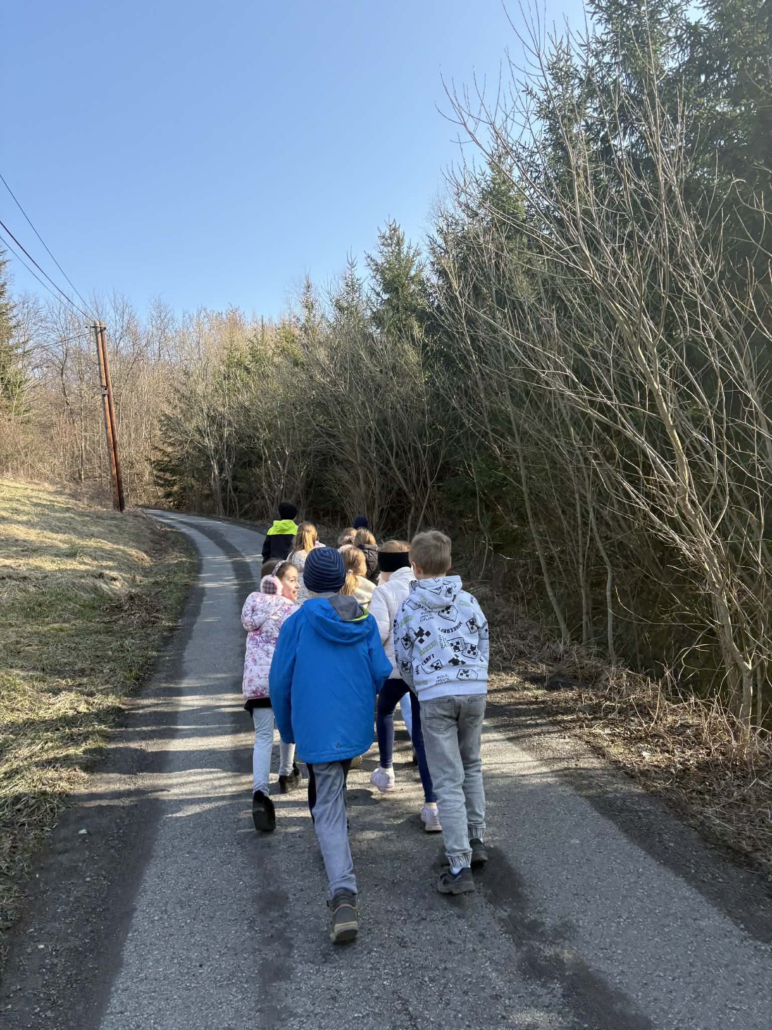 12 marca 2026 roku uczniowie klasy 2 wzięli udział w lekcji wychowania fizycznego w terenie. Zajęcia odbyły się w pobliskim lesie i miały formę spaceru połączonego z obserwacją przyrody. Podczas marszu uczniowie doskonalili swoją kondycję fizyczną, uczyli się prawidłowego zachowania w lesie oraz zwracali uwagę na oznaki zbliżającej się wiosny. Była to doskonała okazja do aktywności na świeżym powietrzu, integracji klasy oraz rozwijania zainteresowania otaczającą przyrodą. Wszyscy uczestnicy wrócili z wycieczki w dobrych humorach i z nową energią do dalszej nauki.