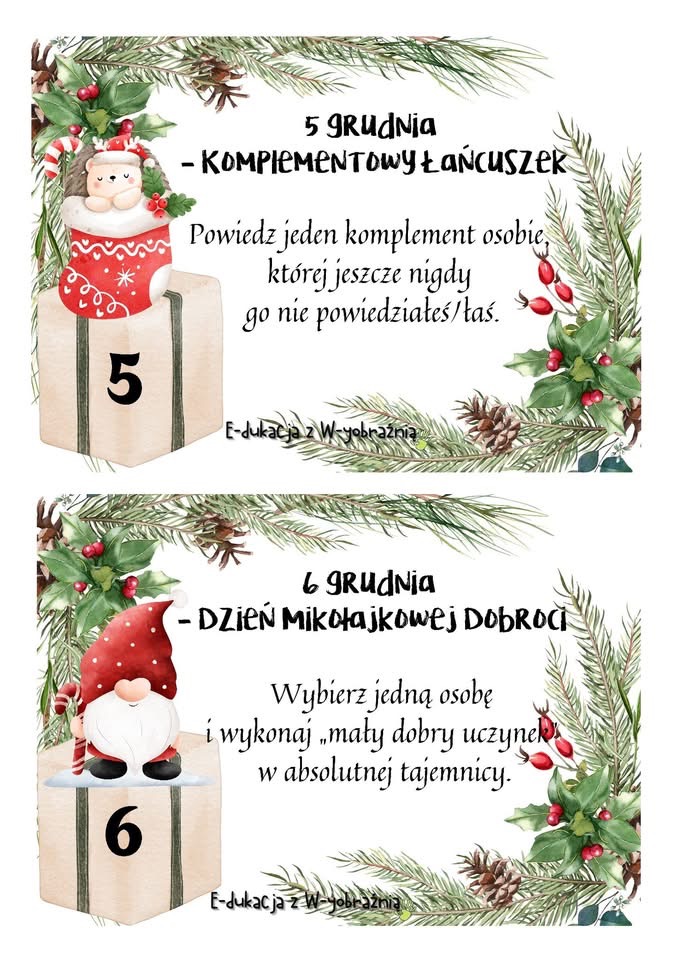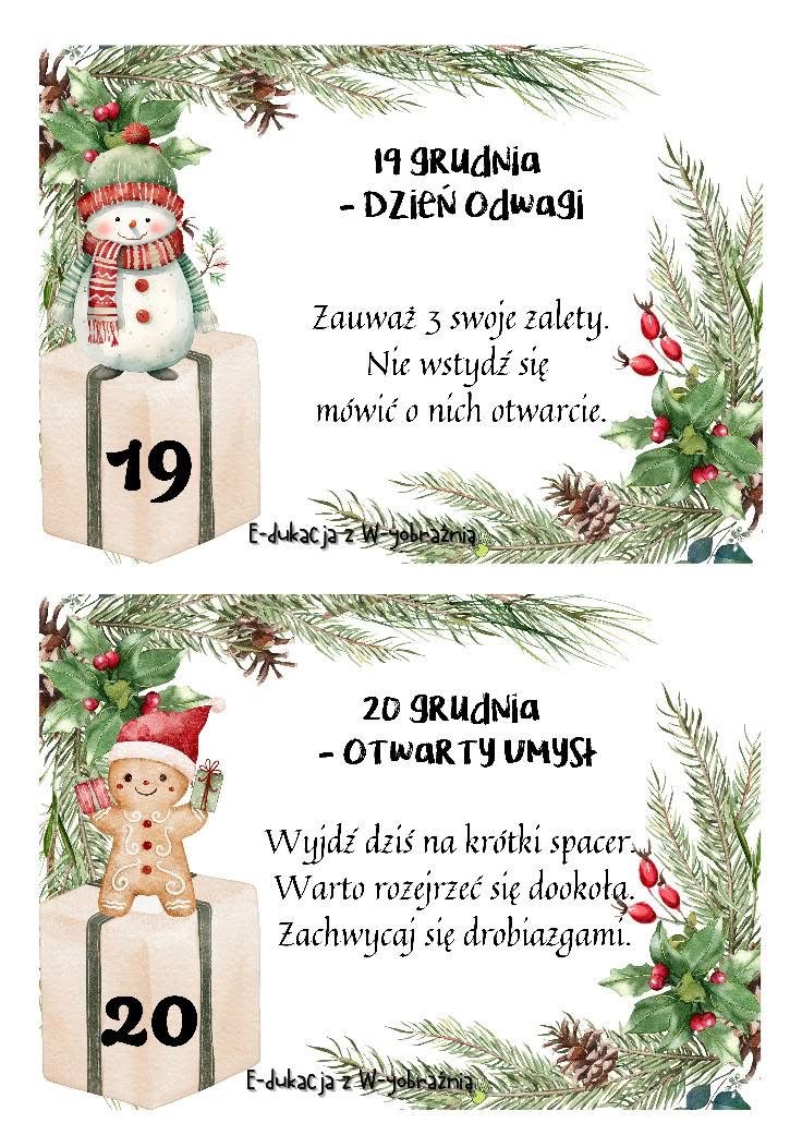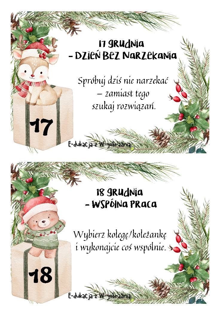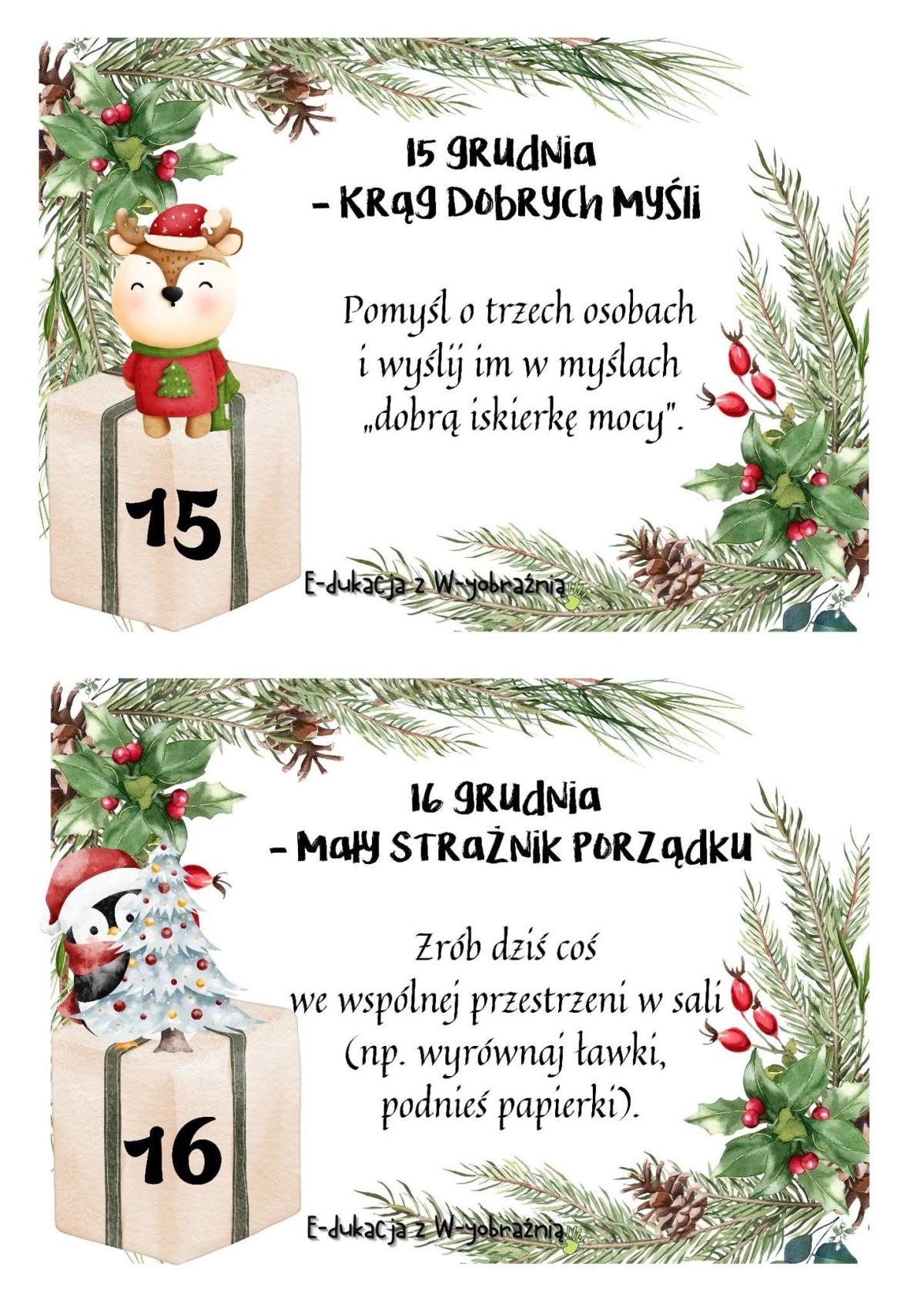Codziennie odwiedzaj nas, otwieraj kolejne "okienka" i losuj wyjątkowe zadania do wykonania- pełne radości, kratywności i świątecznego klimatu.