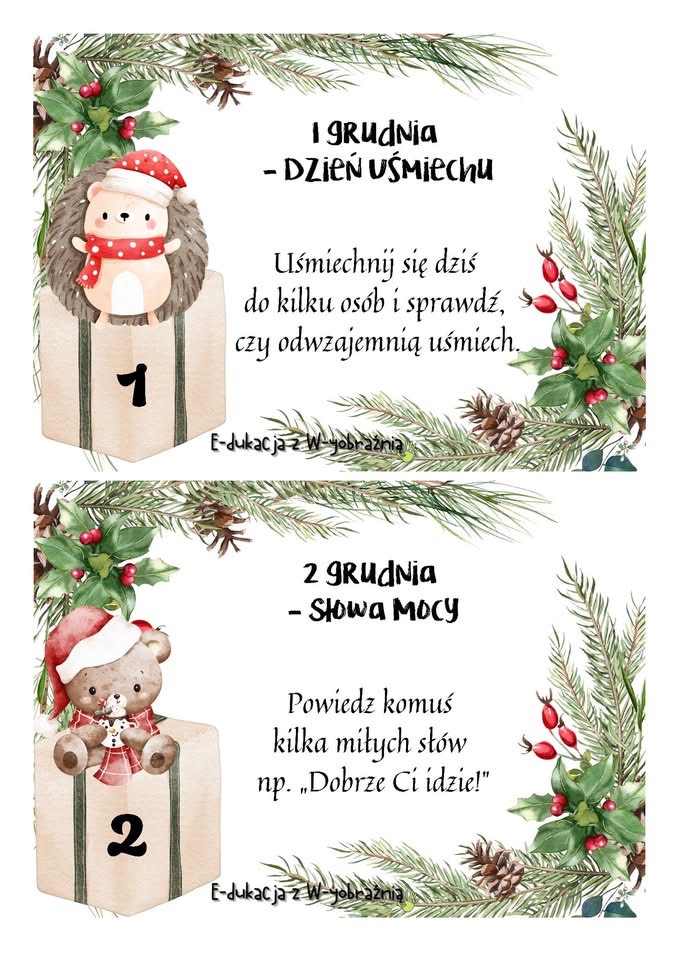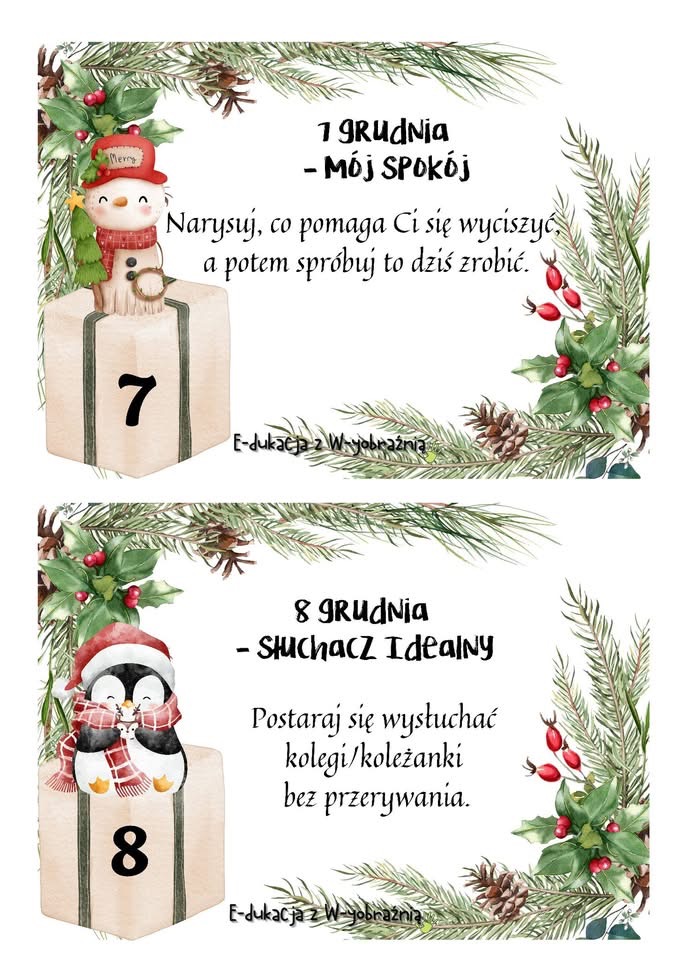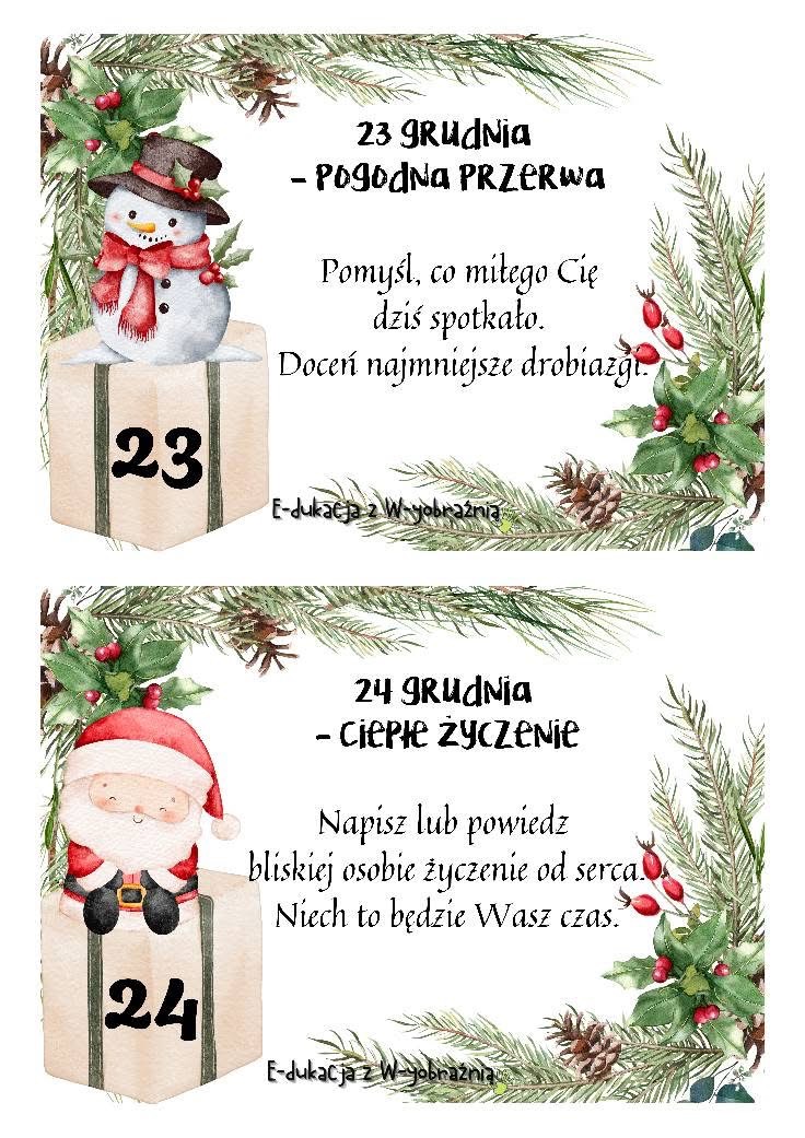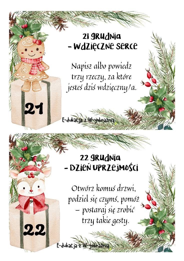Codziennie odwiedzaj nas, otwieraj kolejne "okienka" i losuj wyjątkowe zadania do wykonania- pełne radości, kratywności i świątecznego klimatu.