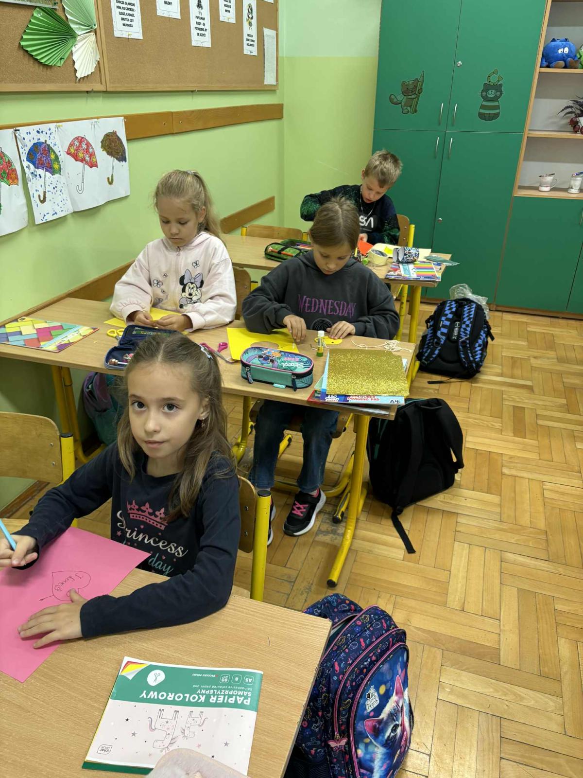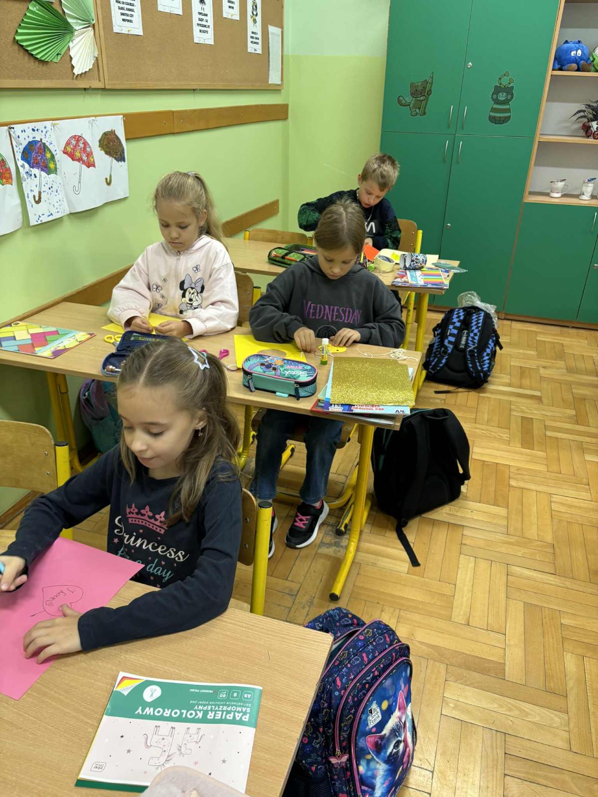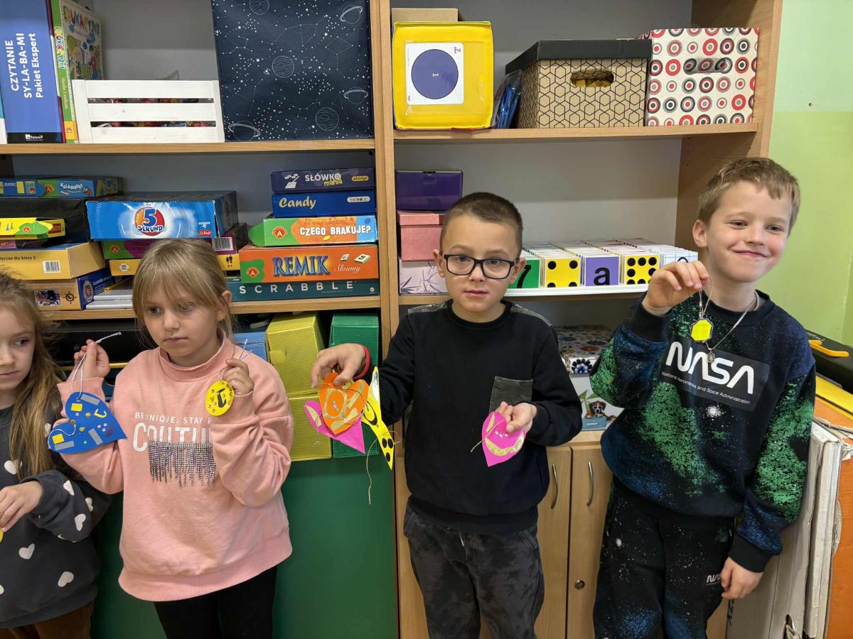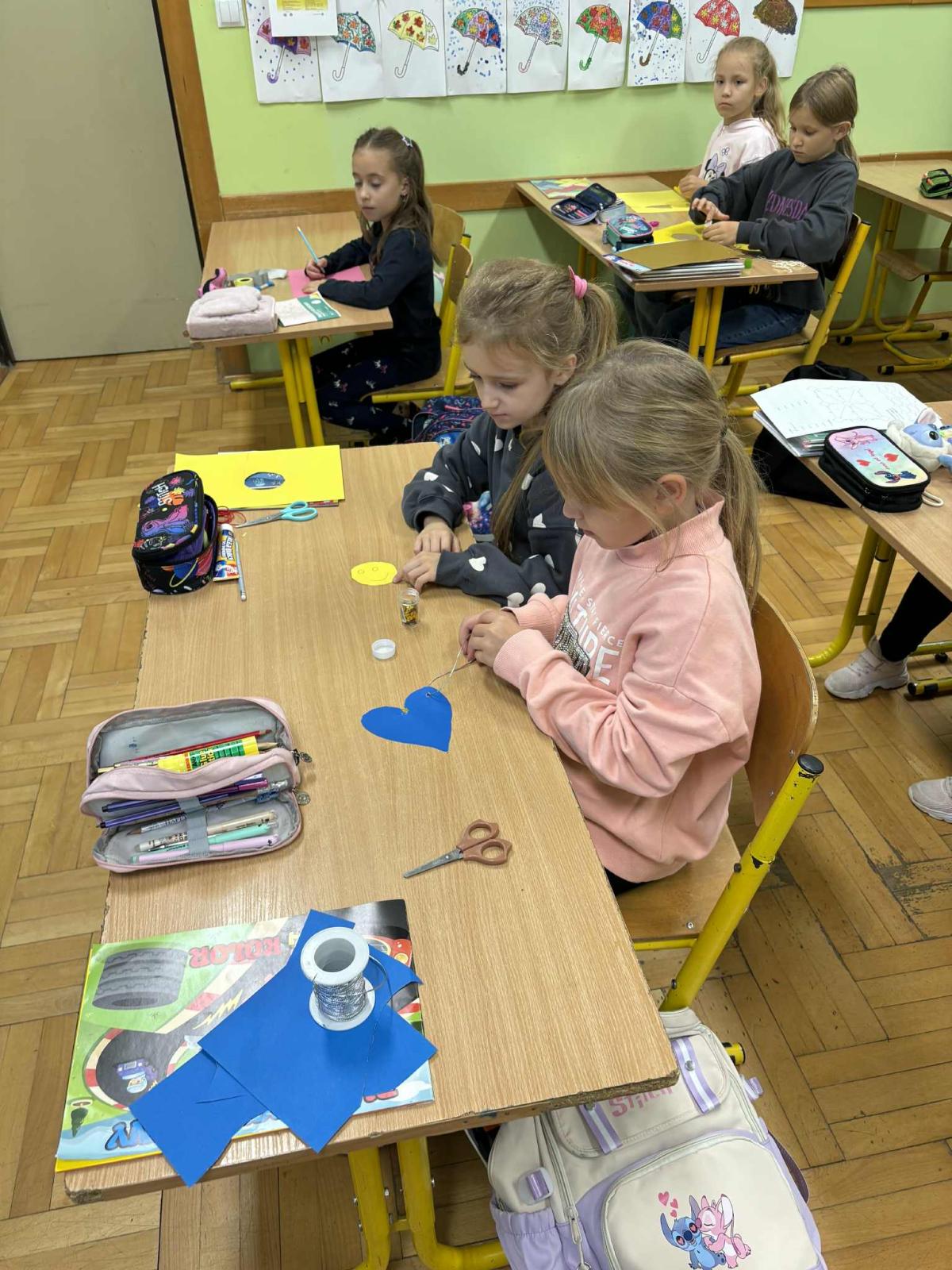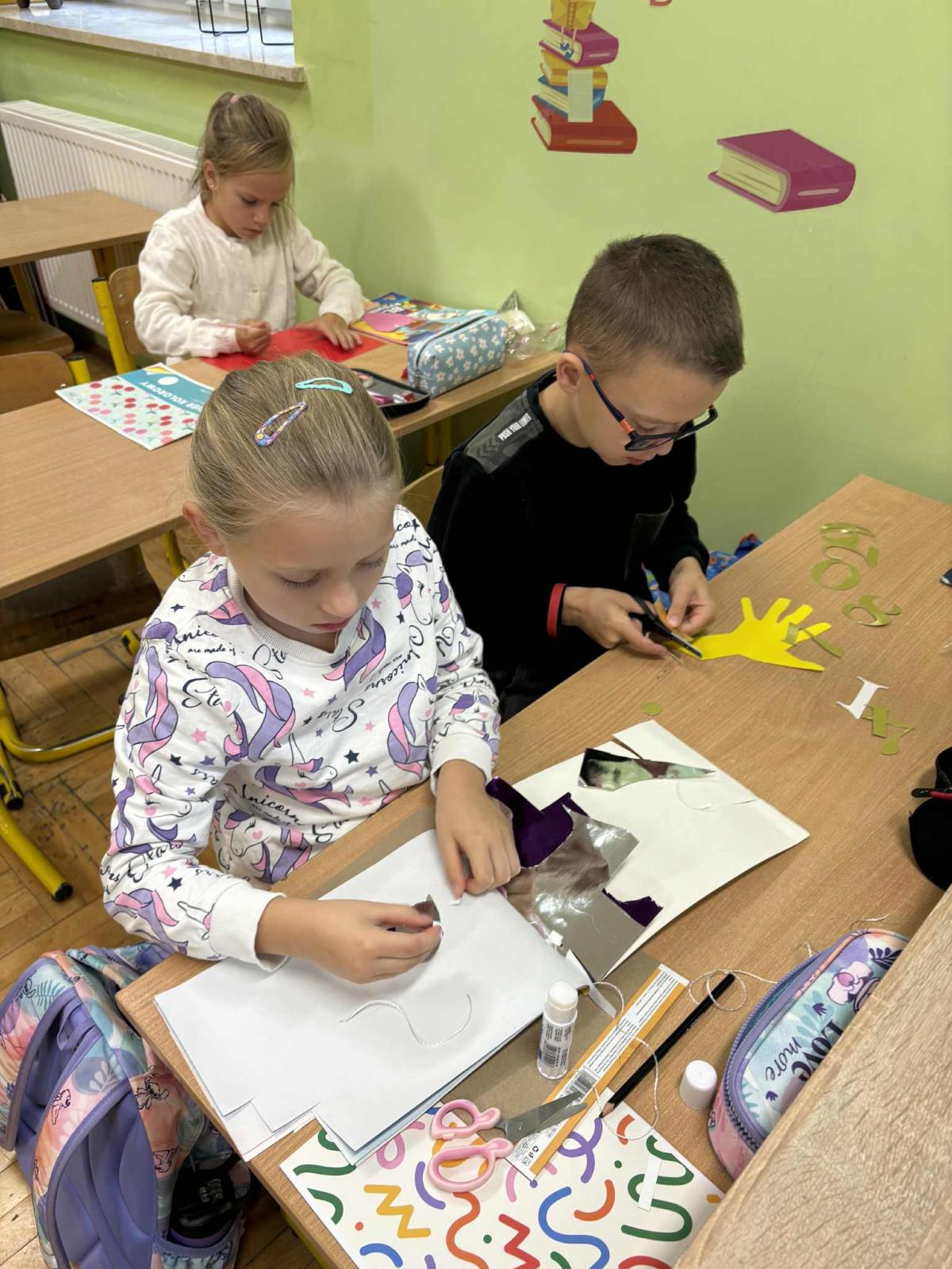 Najpierw zajęcia o bezpieczeństwie, poznanie zasad bezpiecznego poruszania się po drogach, a potem… Nie ma to jak samodzielnie zaprojektowany i zrobiony odblask. W czasie zajęć kształtujących kreatywność uczniowie klasy II mogli wykonać własne odblaski wykorzystując samoprzylepną folię odblaskową i kolorowe ozdoby. Powstałe odblaski powiesiliśmy na plecaki, aby przypominać innym o noszeniu tak ważnego gadżetu.