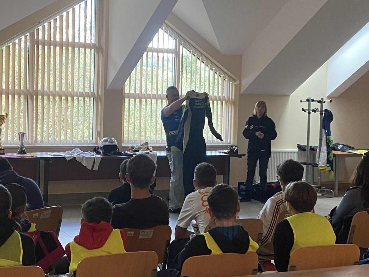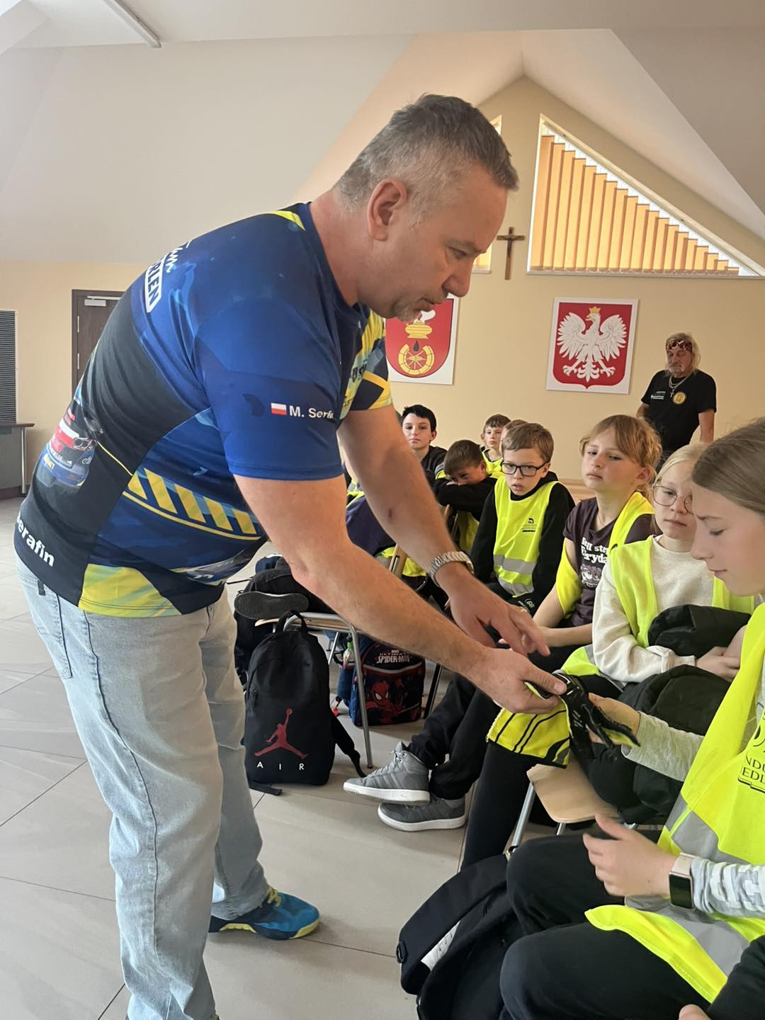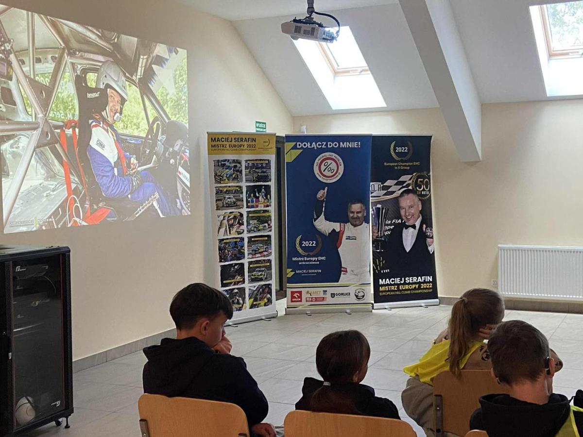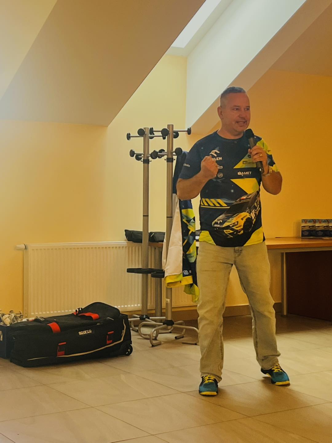 Podczas spotkania pan Maciej opowiedział o swojej drodze do sukcesów, dzieląc się doświadczeniami z dzieciństwa, pasją do motoryzacji oraz trudnościami, które napotkał na swojej drodze. Wspomniał również o nieszczęśliwych wypadkach, które miały wpływ na jego życie i postrzeganie bezpieczeństwa w sporcie. Podkreślił, jak ważne jest odpowiednie przygotowanie, zarówno fizyczne, jak i psychiczne, oraz przestrzeganie zasad bezpieczeństwa podczas zawodów.