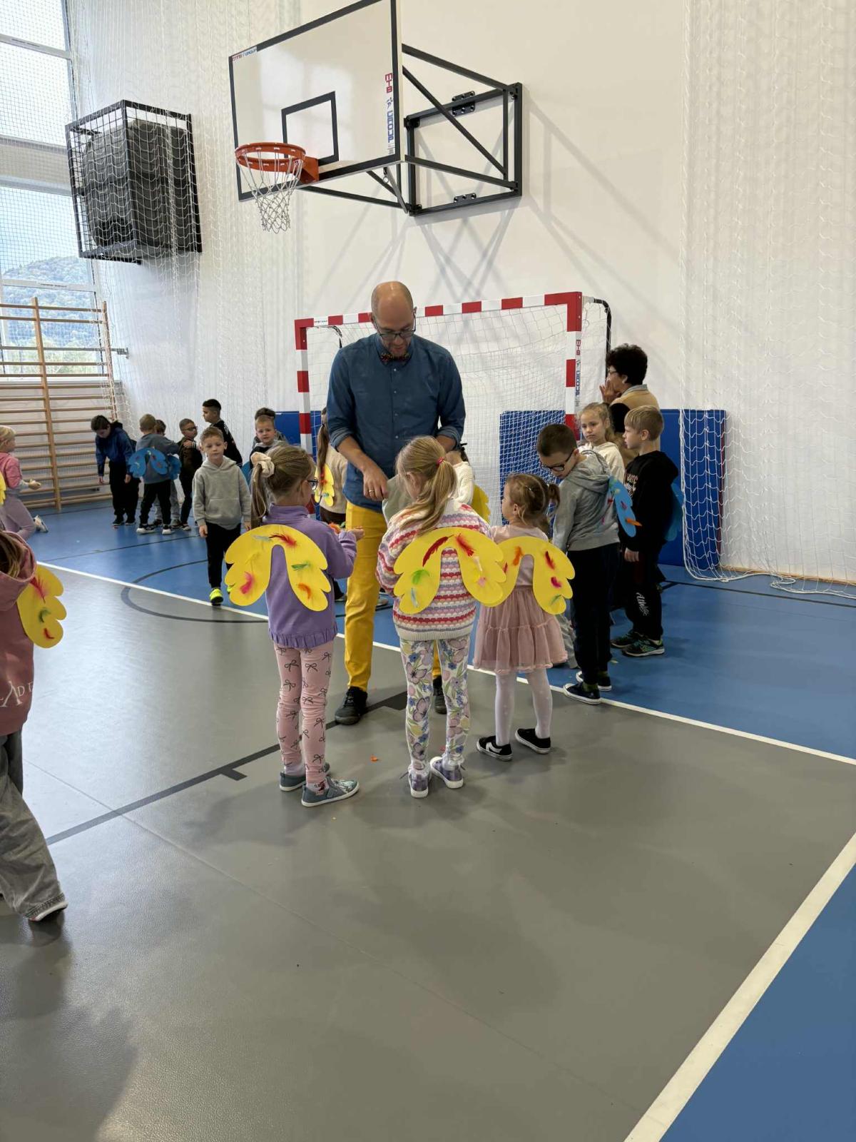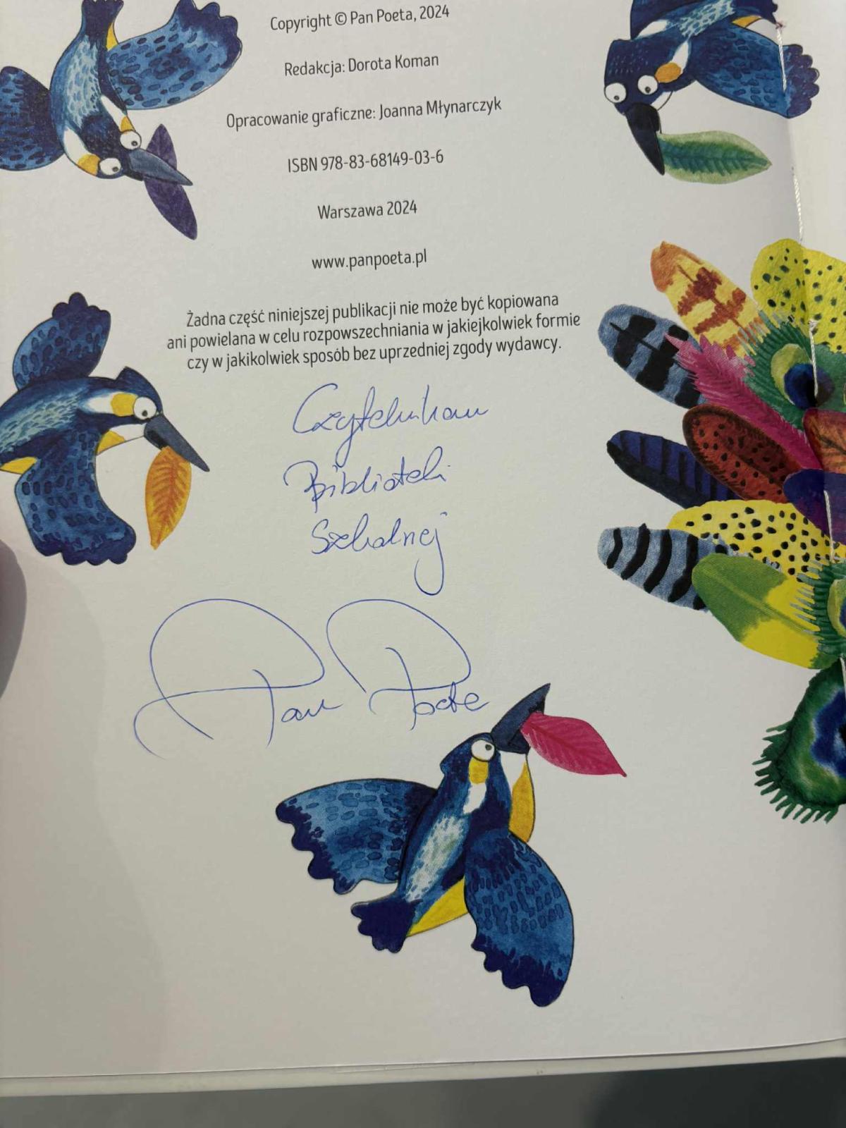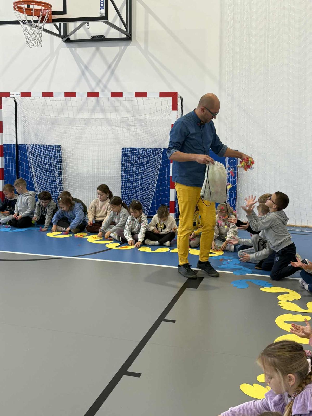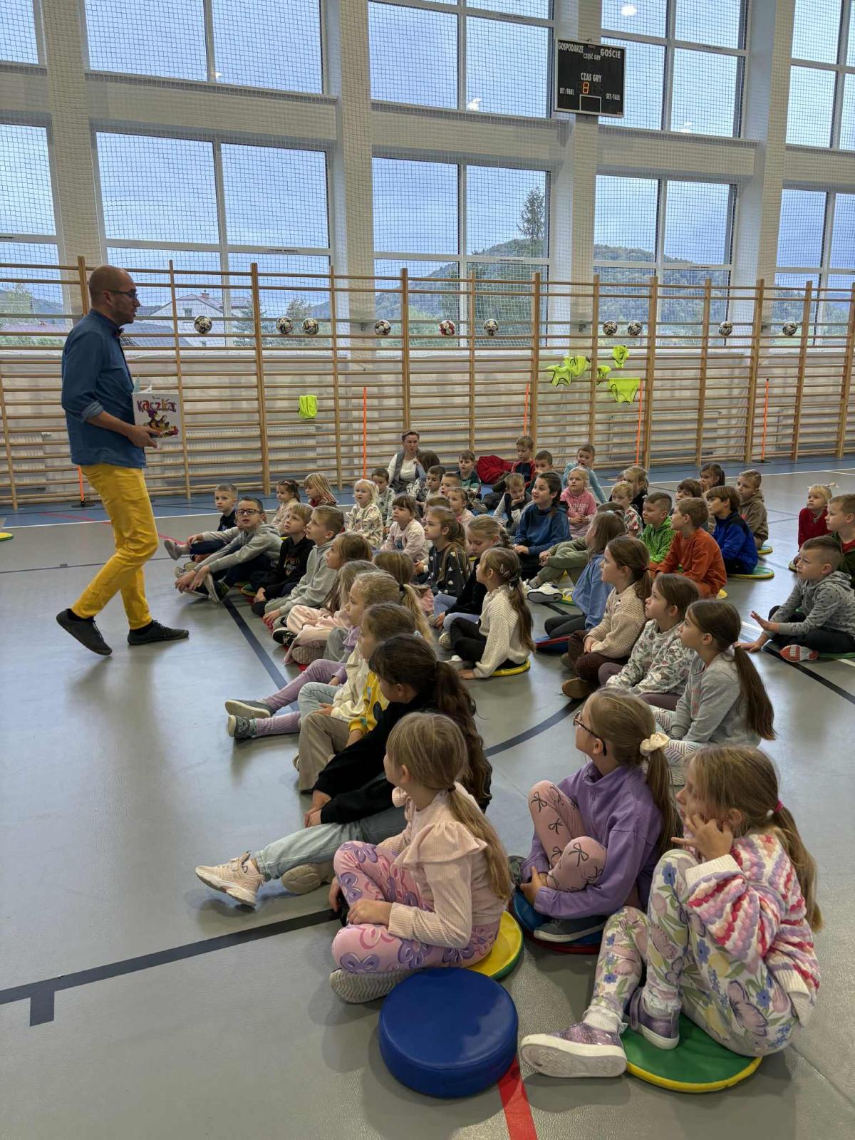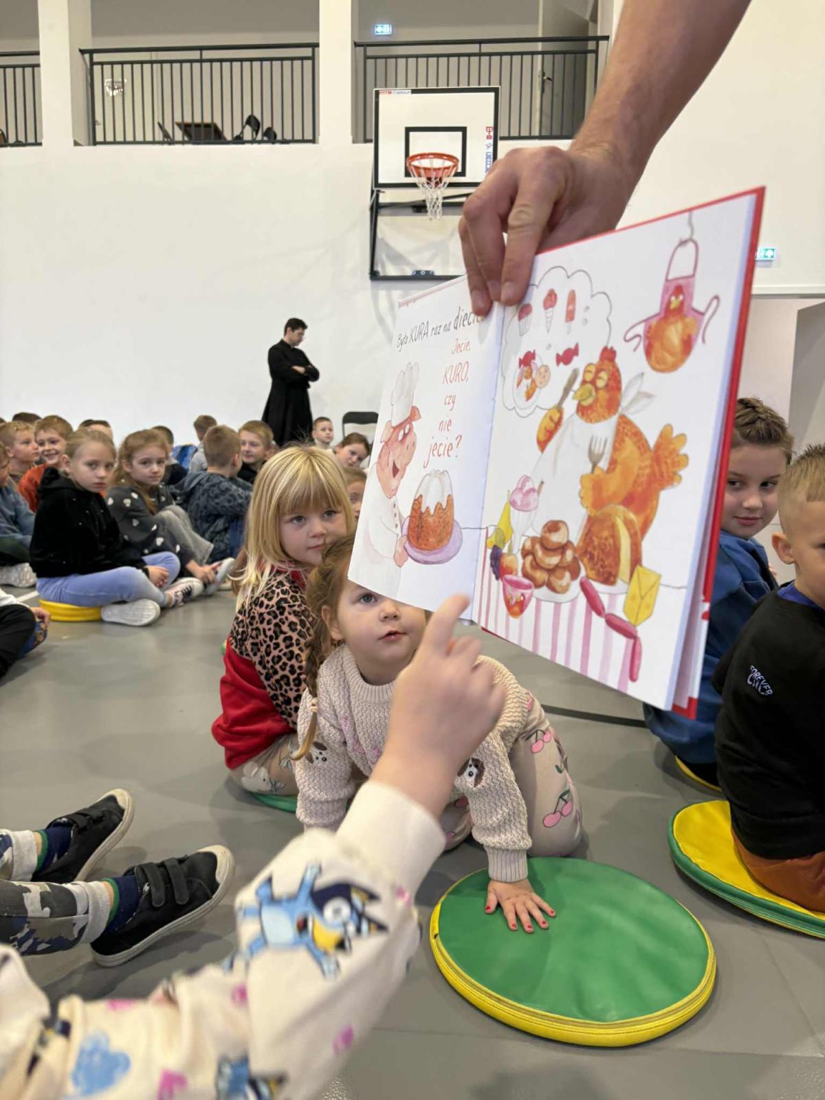 10 października 2025r. w Zespole Szkolno- Przedszkolnym Nr 2 w Ropie odbyło się spotkanie autorskie dla dzieci. Było to prawdziwe literackie SHOW z Panem Poetą! Dwumetrowy pan z muszką, walizki pełne rekwizytów i worek kolorowych balonów to można było zobaczyć w naszej szkole. Balony fruwały pod sufitem, pacynki mówiły ludzkim głosem, a dzieci przebierały się. Z „Kaczką, co przebrała miarkę” Dzieci odkrywały barwną kaczą garderobę. A w niej blisko pięćdziesiąt kolorowych okularów. Ogromna pacynka (bohaterka książki) recytowała dzieciom swoją historię. „Kury, co tyła na diecie” można było dotknąć, pobawić się z nią, a nawet nakarmić zdrowymi owocami i warzywami. Po przeczytaniu książki „Pawia, co ogon miał z przyjaźni„, Pan Poeta pytał dzieci, czy też czasem bywają smutne (jak paw z książki, który zgubił piórka z ogona). Na koniec dzieci ozdobiły swoje skrzydła z papieru kolorowymi piórkami. Młodzi czytelnicy byli pełni wrażeń i pozytywnych emocji, które od tej pory będą kojarzyć się ze spotkaniami autorskimi, książką i czytaniem.