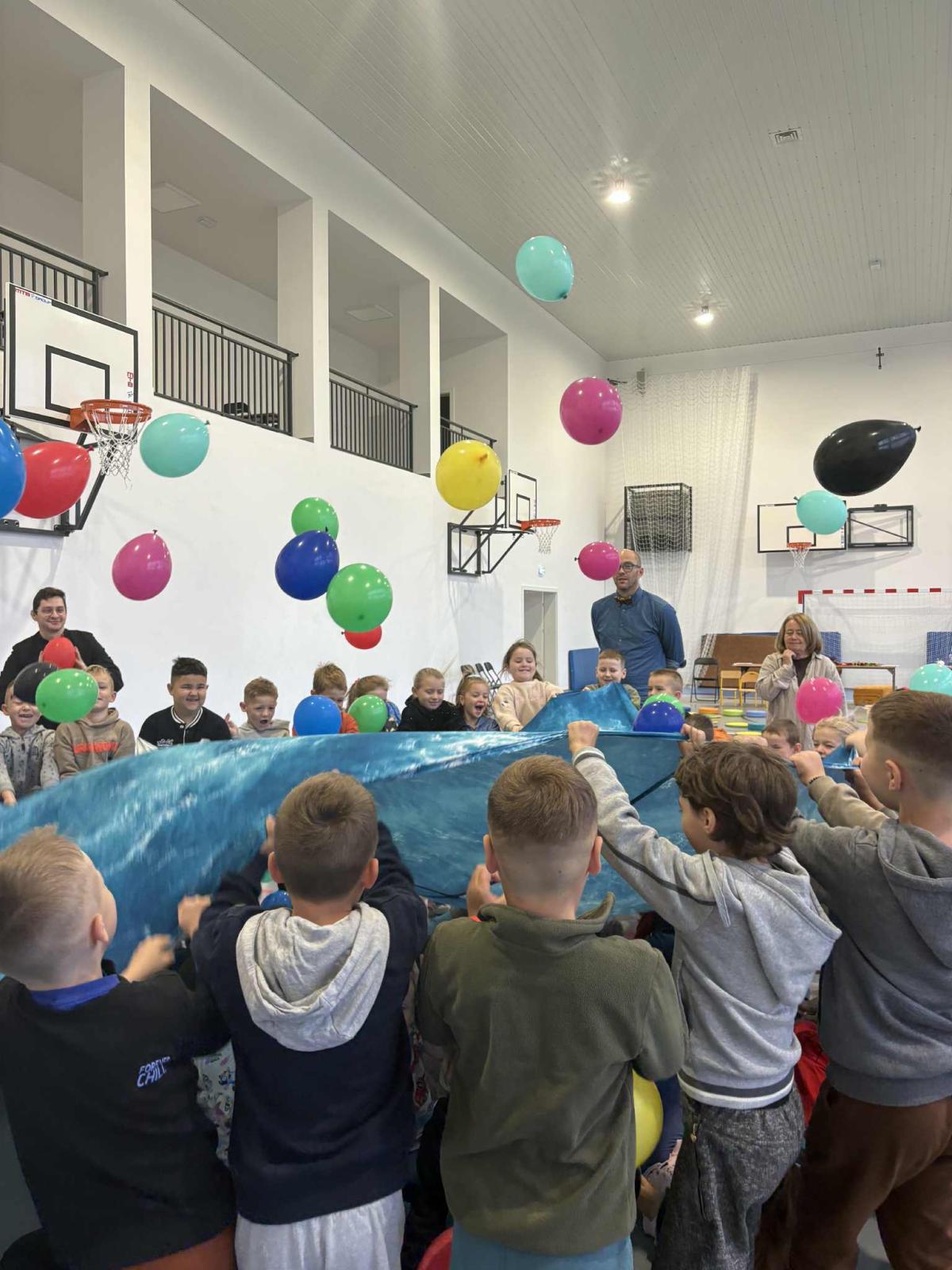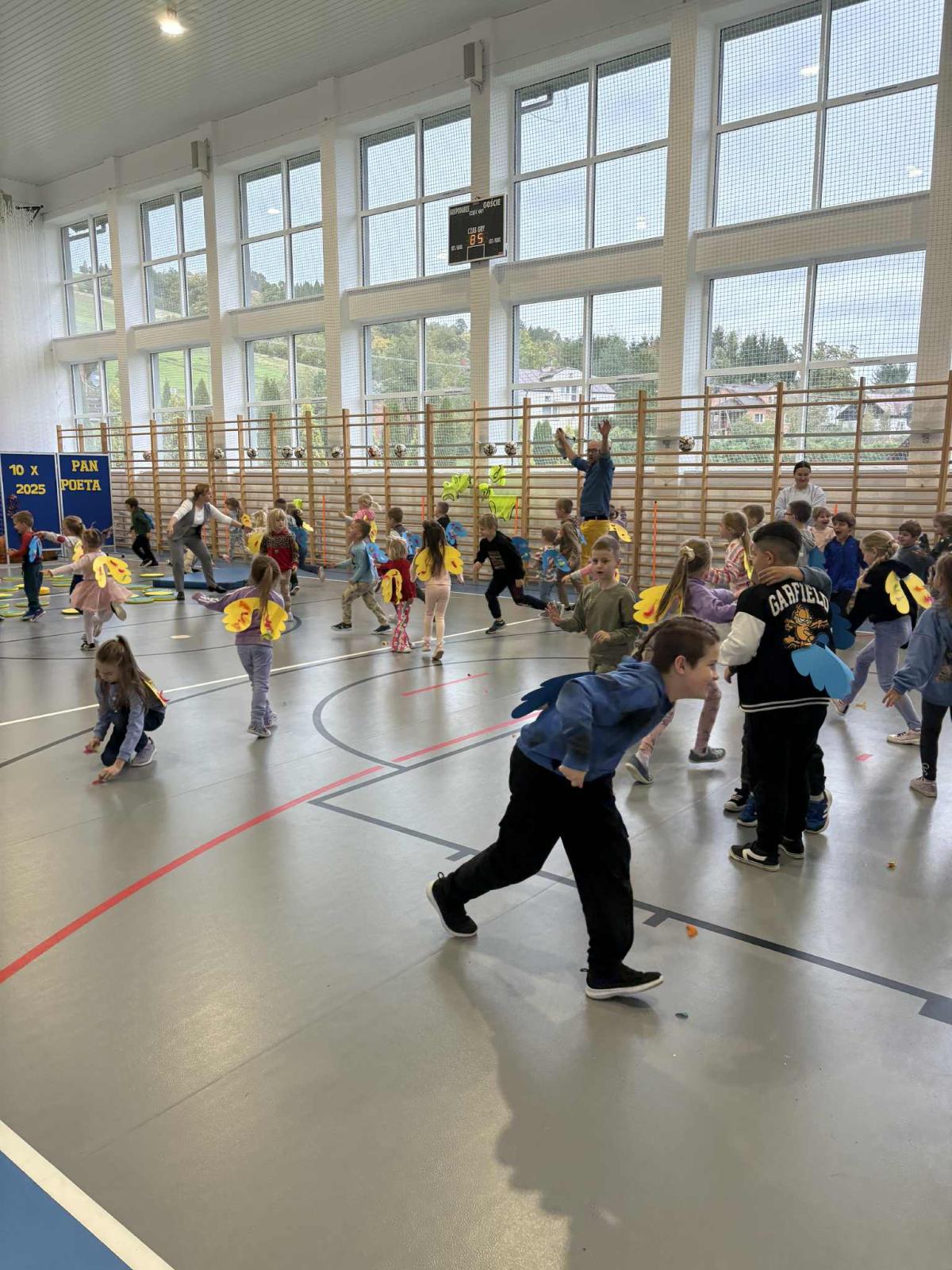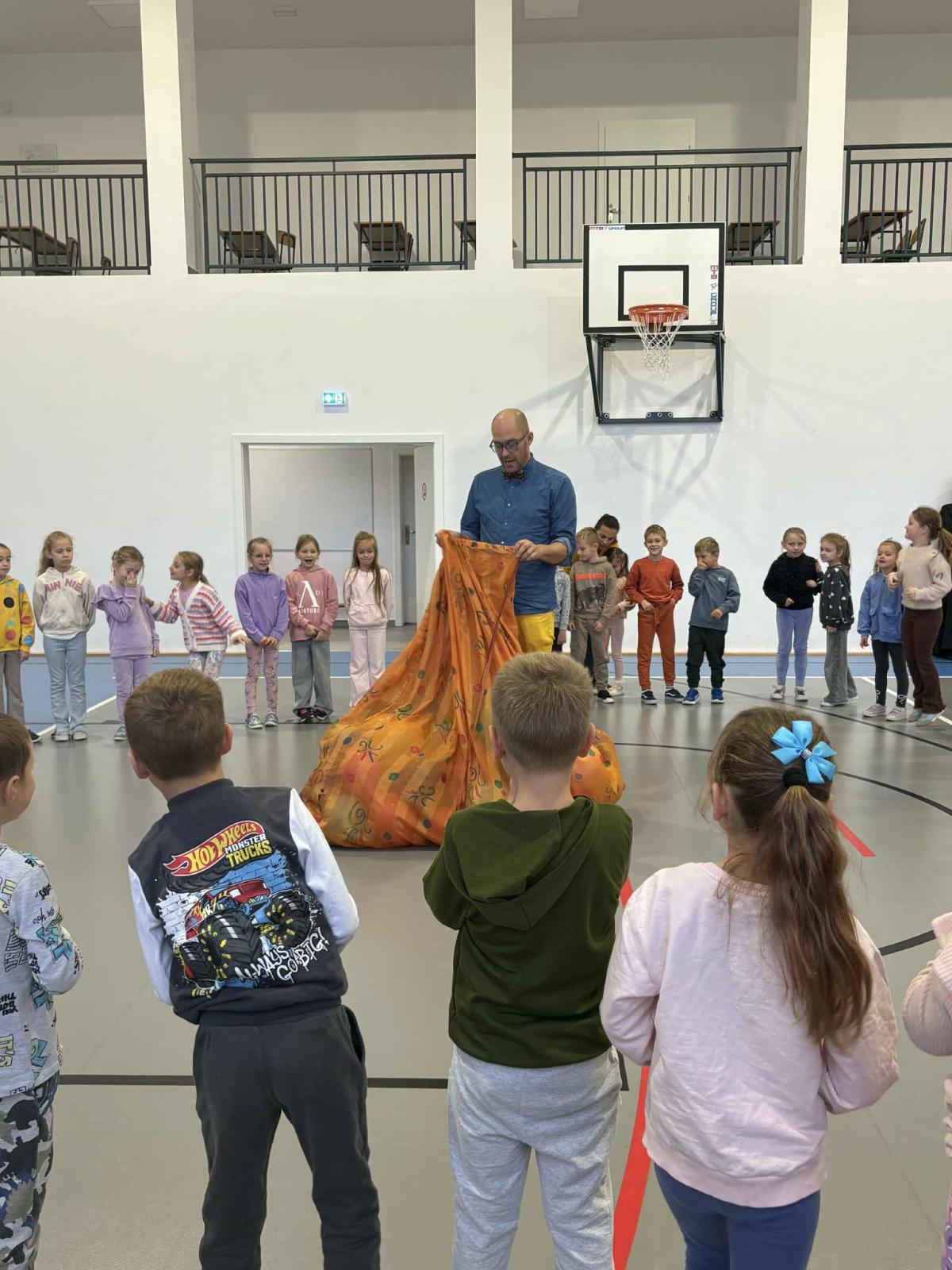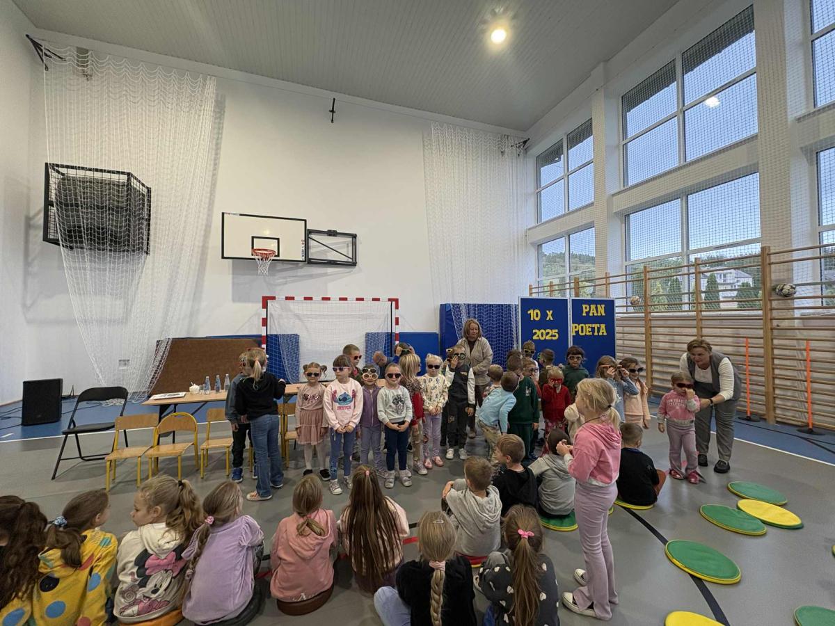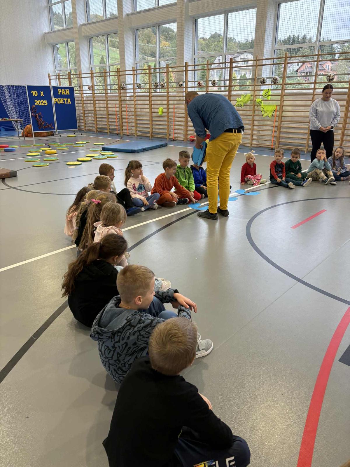 10 października 2025r. w Zespole Szkolno- Przedszkolnym Nr 2 w Ropie odbyło się spotkanie autorskie dla dzieci. Było to prawdziwe literackie SHOW z Panem Poetą! Dwumetrowy pan z muszką, walizki pełne rekwizytów i worek kolorowych balonów to można było zobaczyć w naszej szkole. Balony fruwały pod sufitem, pacynki mówiły ludzkim głosem, a dzieci przebierały się. Z „Kaczką, co przebrała miarkę” Dzieci odkrywały barwną kaczą garderobę. A w niej blisko pięćdziesiąt kolorowych okularów. Ogromna pacynka (bohaterka książki) recytowała dzieciom swoją historię. „Kury, co tyła na diecie” można było dotknąć, pobawić się z nią, a nawet nakarmić zdrowymi owocami i warzywami. Po przeczytaniu książki „Pawia, co ogon miał z przyjaźni„, Pan Poeta pytał dzieci, czy też czasem bywają smutne (jak paw z książki, który zgubił piórka z ogona). Na koniec dzieci ozdobiły swoje skrzydła z papieru kolorowymi piórkami. Młodzi czytelnicy byli pełni wrażeń i pozytywnych emocji, które od tej pory będą kojarzyć się ze spotkaniami autorskimi, książką i czytaniem.
