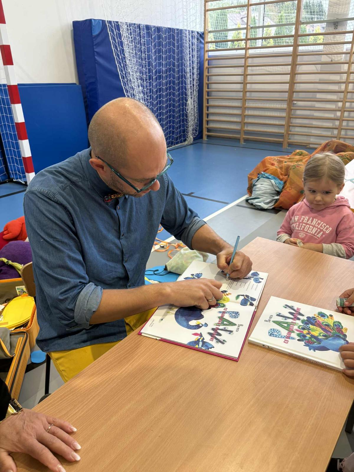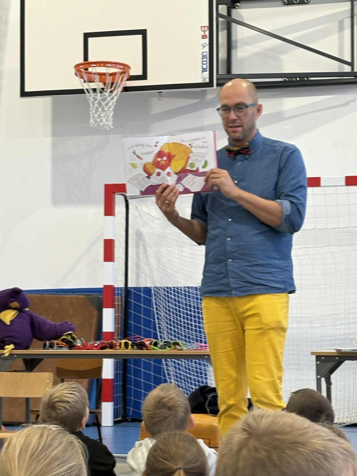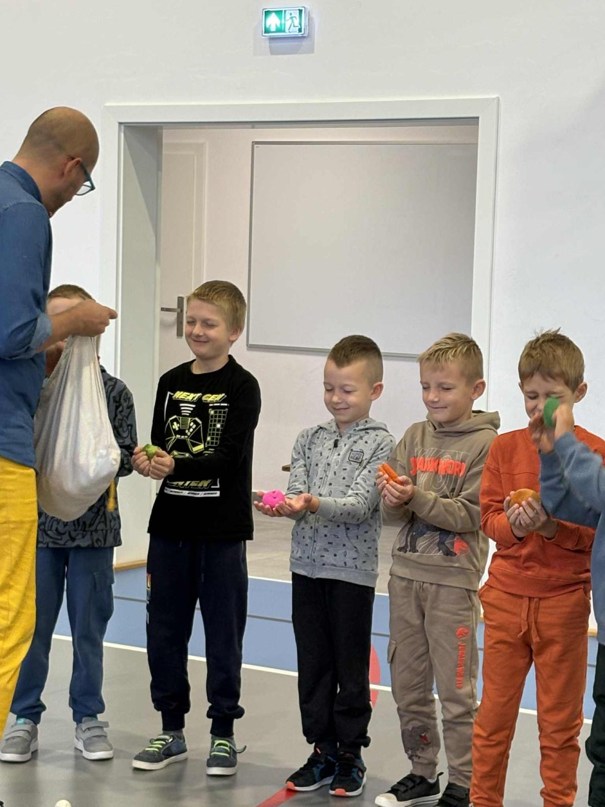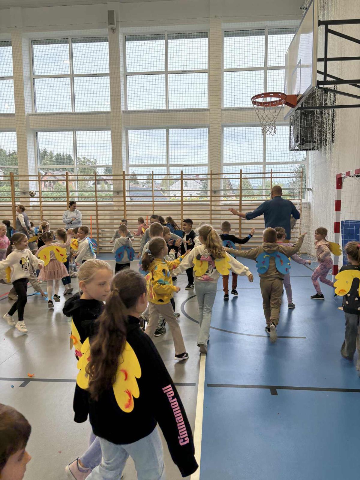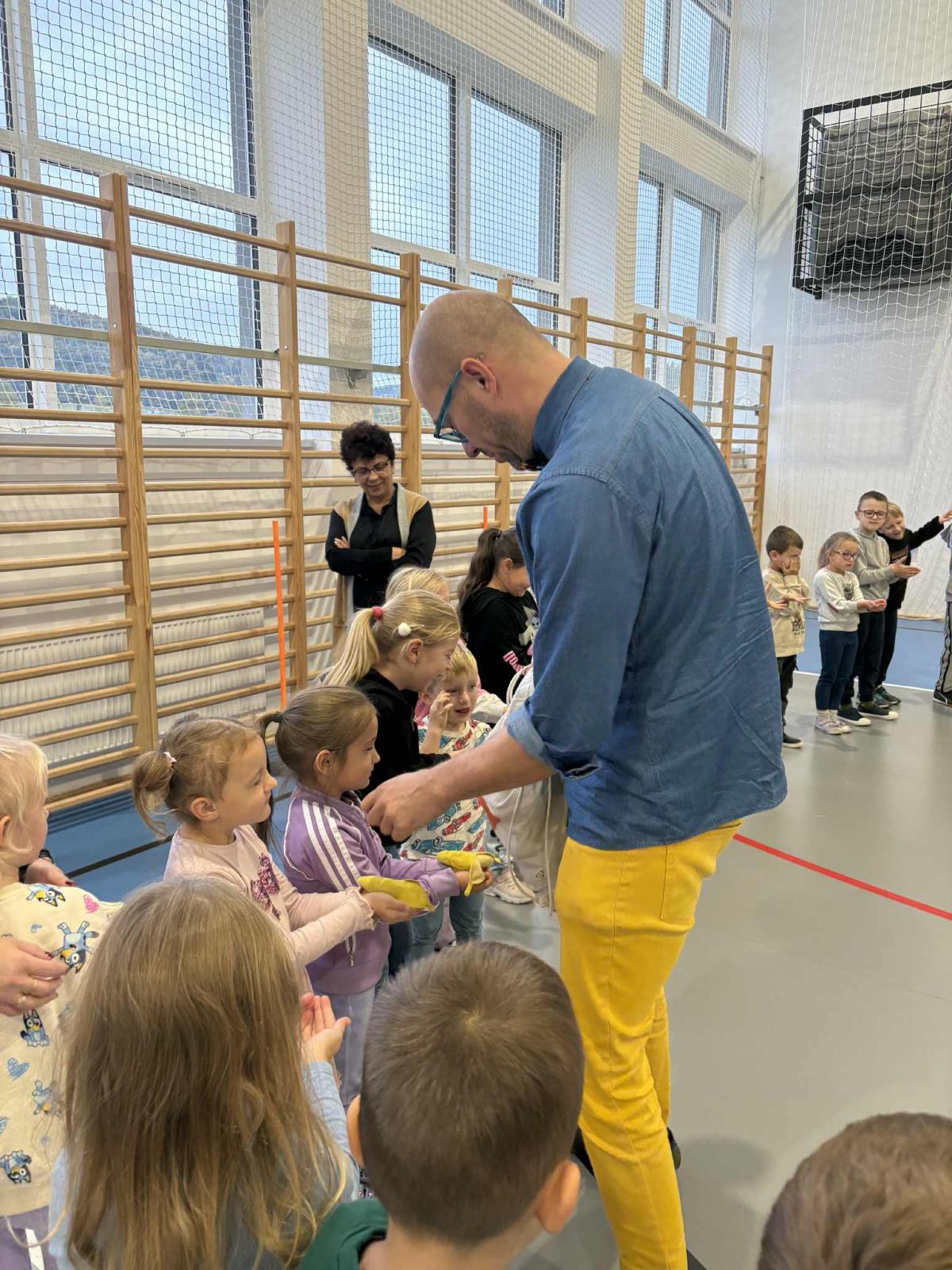 10 października 2025r. w Zespole Szkolno- Przedszkolnym Nr 2 w Ropie odbyło się spotkanie autorskie dla dzieci. Było to prawdziwe literackie SHOW z Panem Poetą! Dwumetrowy pan z muszką, walizki pełne rekwizytów i worek kolorowych balonów to można było zobaczyć w naszej szkole. Balony fruwały pod sufitem, pacynki mówiły ludzkim głosem, a dzieci przebierały się. Z „Kaczką, co przebrała miarkę” Dzieci odkrywały barwną kaczą garderobę. A w niej blisko pięćdziesiąt kolorowych okularów. Ogromna pacynka (bohaterka książki) recytowała dzieciom swoją historię. „Kury, co tyła na diecie” można było dotknąć, pobawić się z nią, a nawet nakarmić zdrowymi owocami i warzywami. Po przeczytaniu książki „Pawia, co ogon miał z przyjaźni„, Pan Poeta pytał dzieci, czy też czasem bywają smutne (jak paw z książki, który zgubił piórka z ogona). Na koniec dzieci ozdobiły swoje skrzydła z papieru kolorowymi piórkami. Młodzi czytelnicy byli pełni wrażeń i pozytywnych emocji, które od tej pory będą kojarzyć się ze spotkaniami autorskimi, książką i czytaniem.