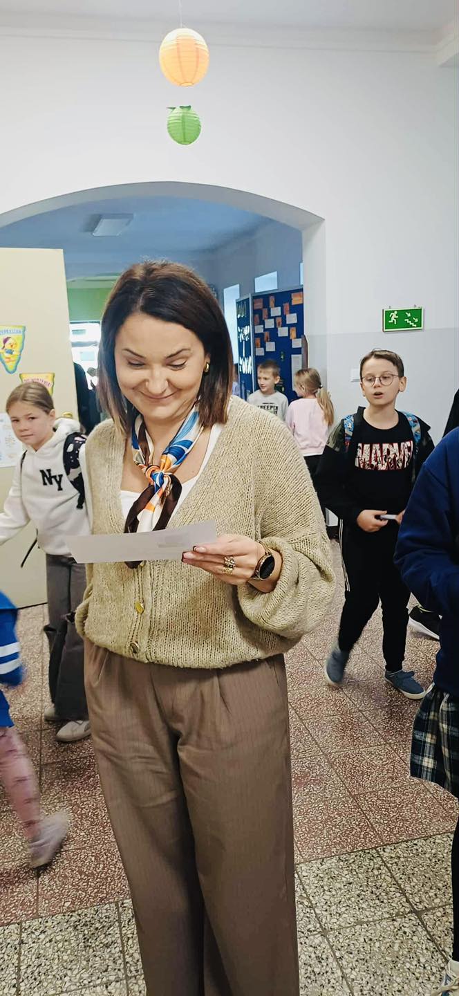 Dnia 21.10.2025 r. uczniowie klasy 6 postanowili sprawdzić, jak dobrze nauczyciele znają zasady bezpiecznego poruszania się po drodze. Zorganizowali więc w szkole konkurs wiedzy, w którym pedagodzy musieli zmierzyć się z pytaniami podobnymi do tych, które pojawiają się na egzaminie na prawo jazdy!