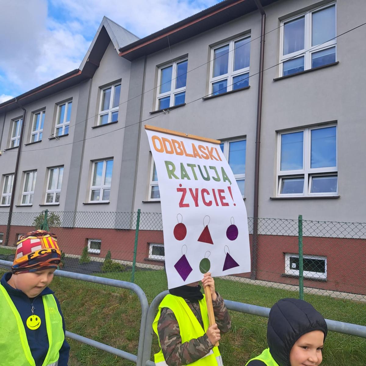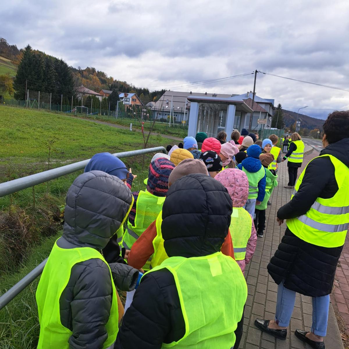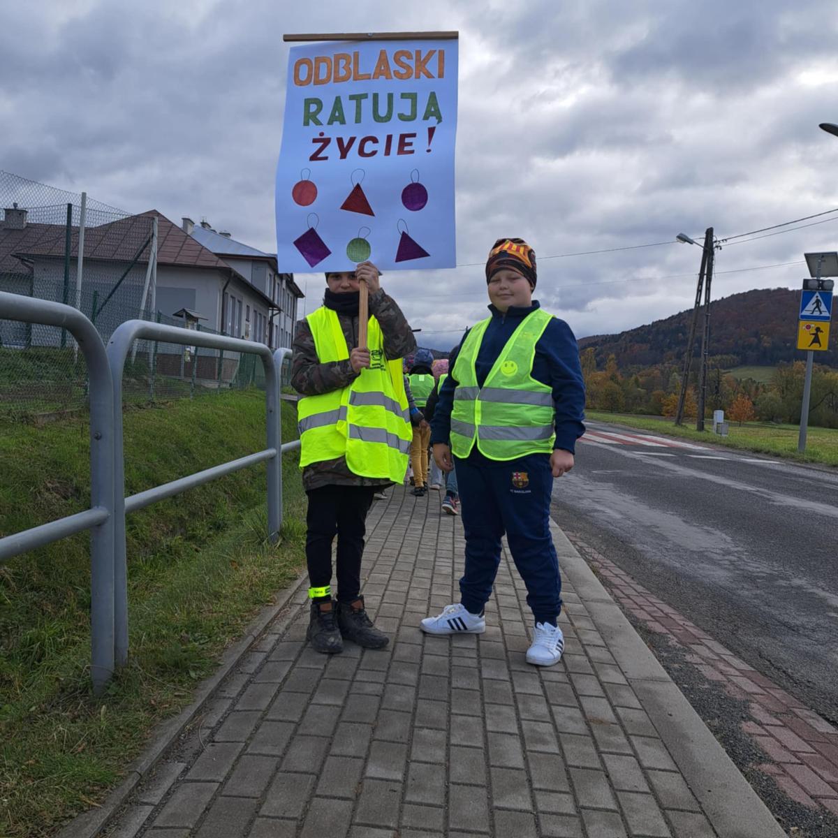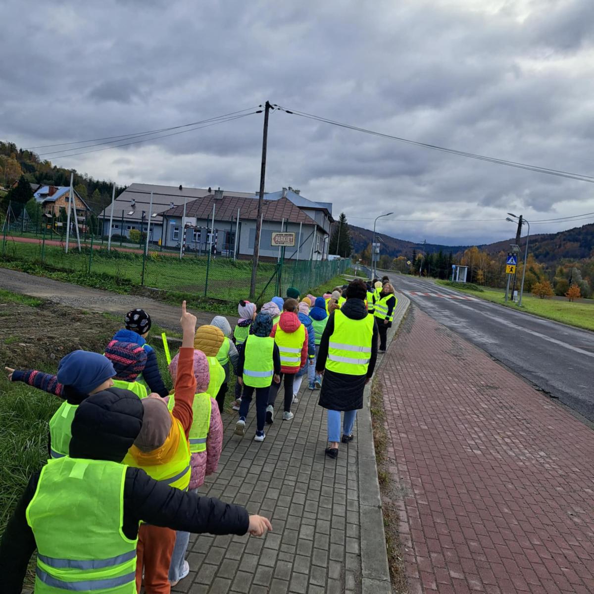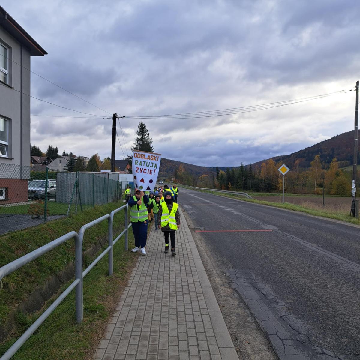W dniu 28.10.2025 roku uczniowie klas I i III wzięli udział w spacerze odblaskowym, promującym bezpieczeństwo na drodze. Dzieci ubrane w kamizelki odblaskowe i niosące transparent z hasłem przypominającym o konieczności bycia widocznym, przeszły ulicami naszej miejscowości.