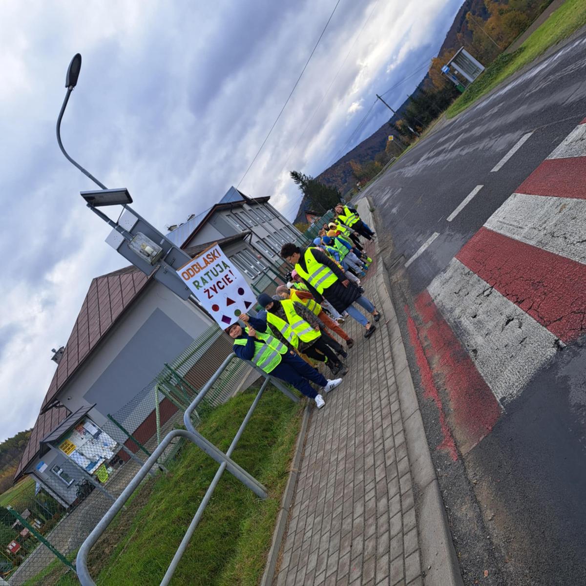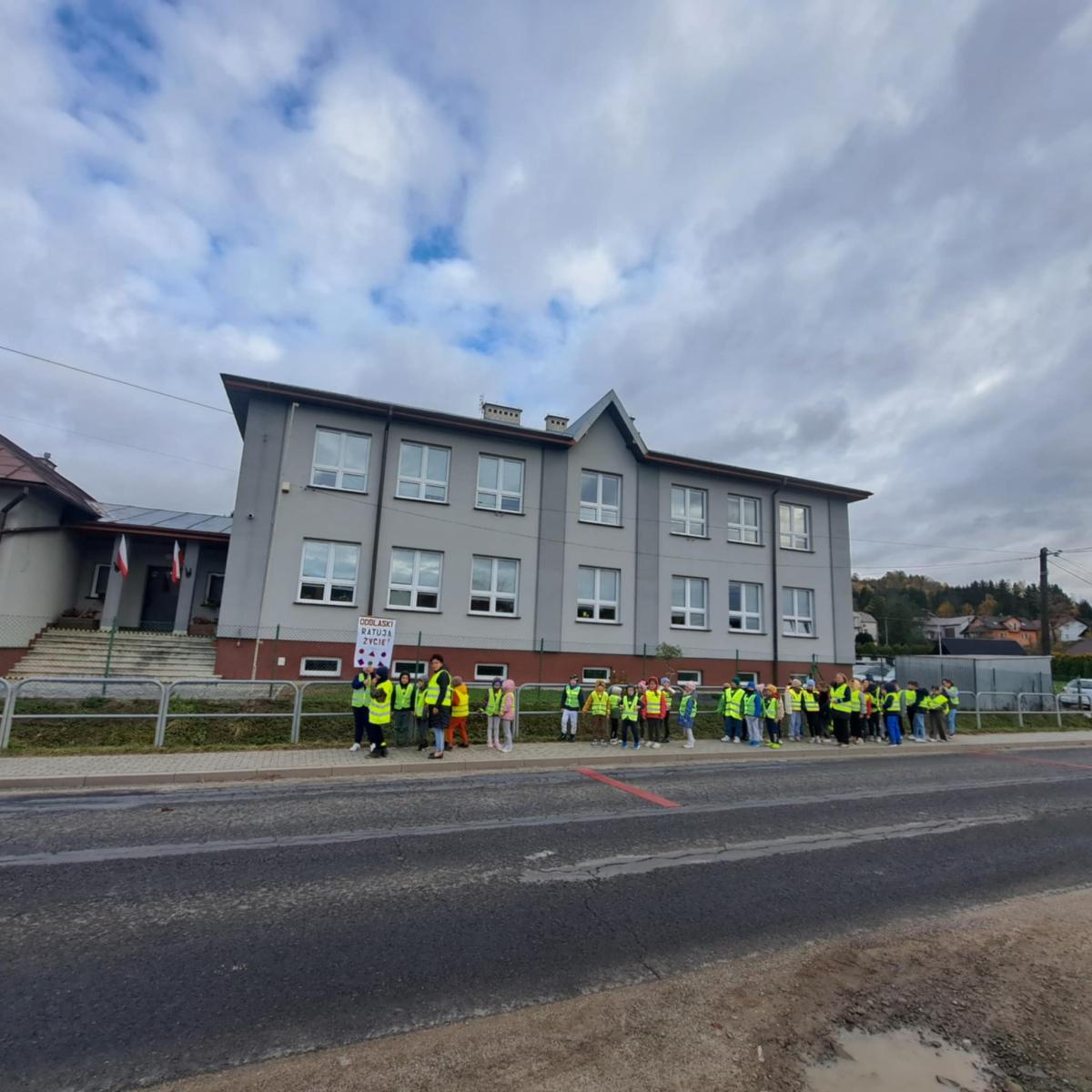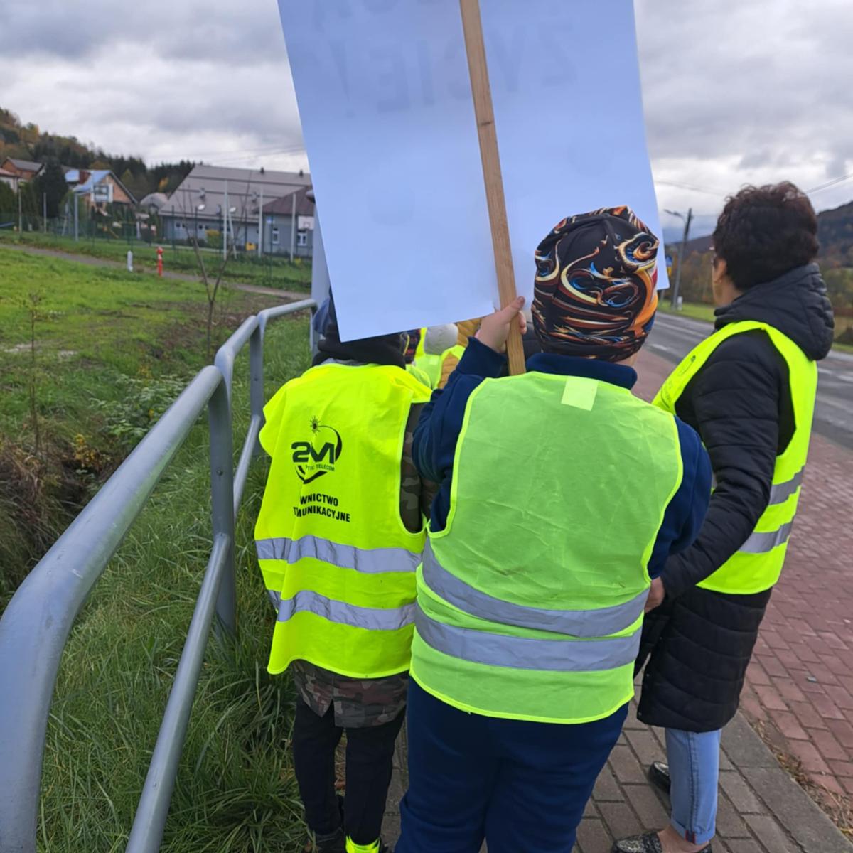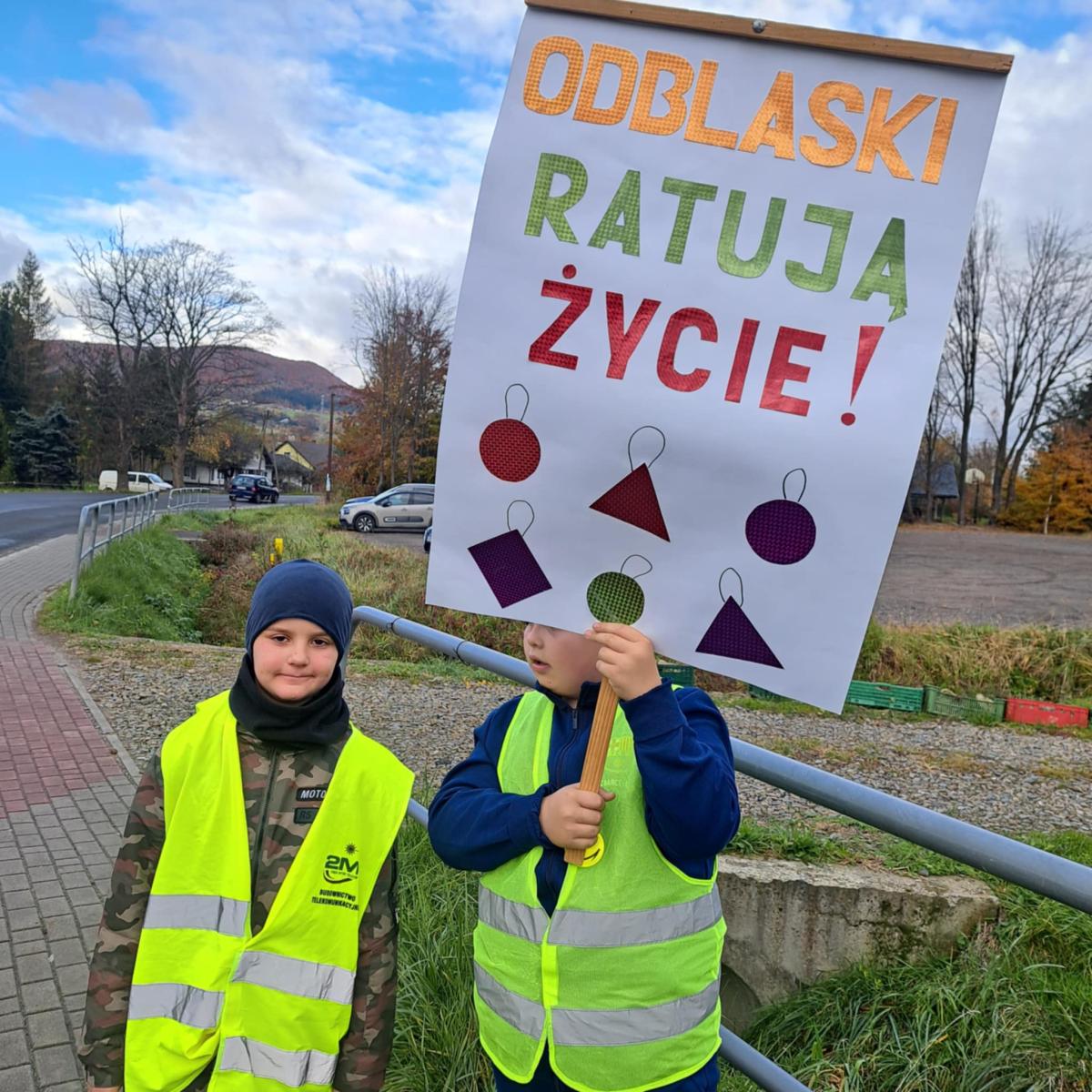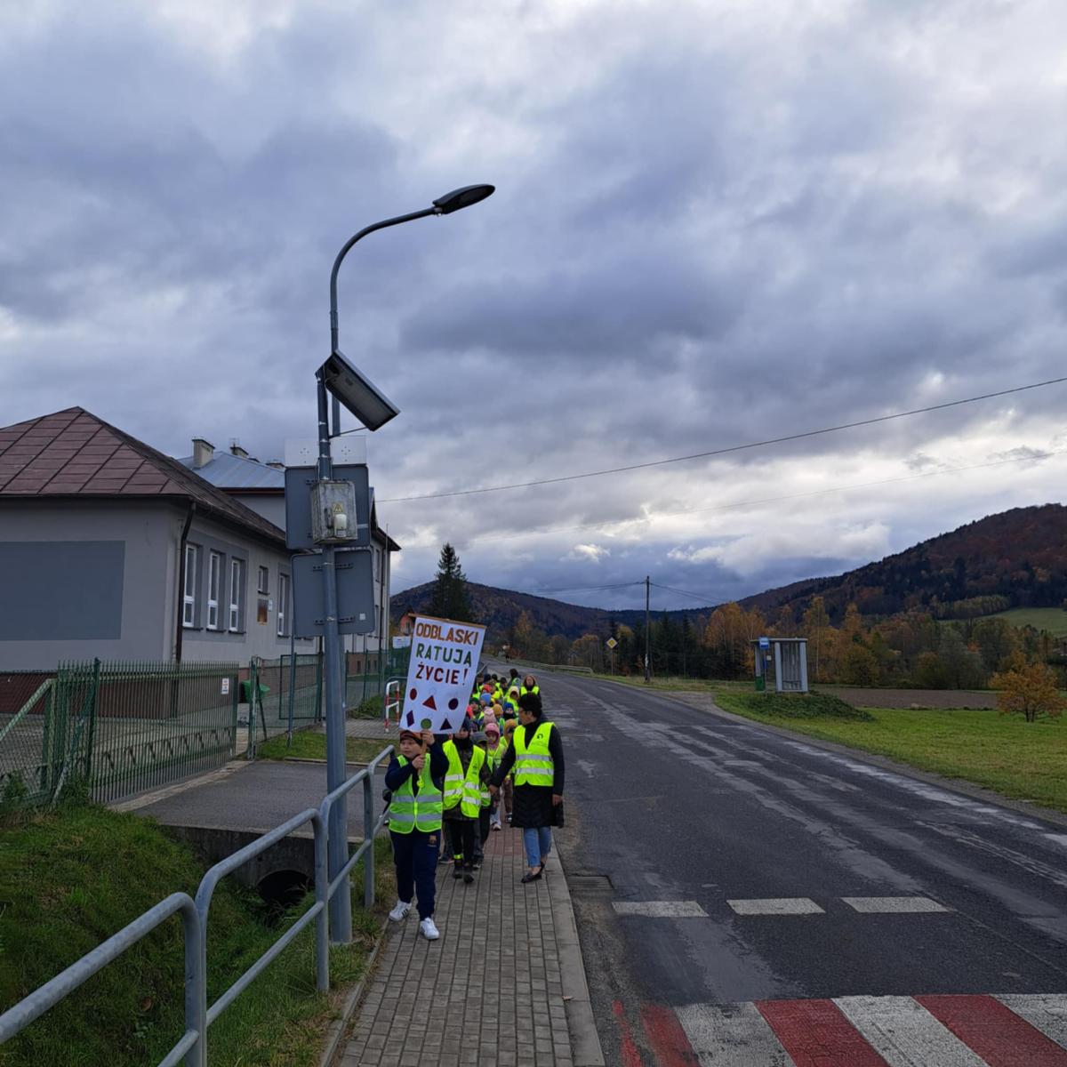 W dniu 28.10.2025 roku uczniowie klas I i III wzięli udział w spacerze odblaskowym, promującym bezpieczeństwo na drodze. Dzieci ubrane w kamizelki odblaskowe i niosące transparent z hasłem przypominającym o konieczności bycia widocznym, przeszły ulicami naszej miejscowości.