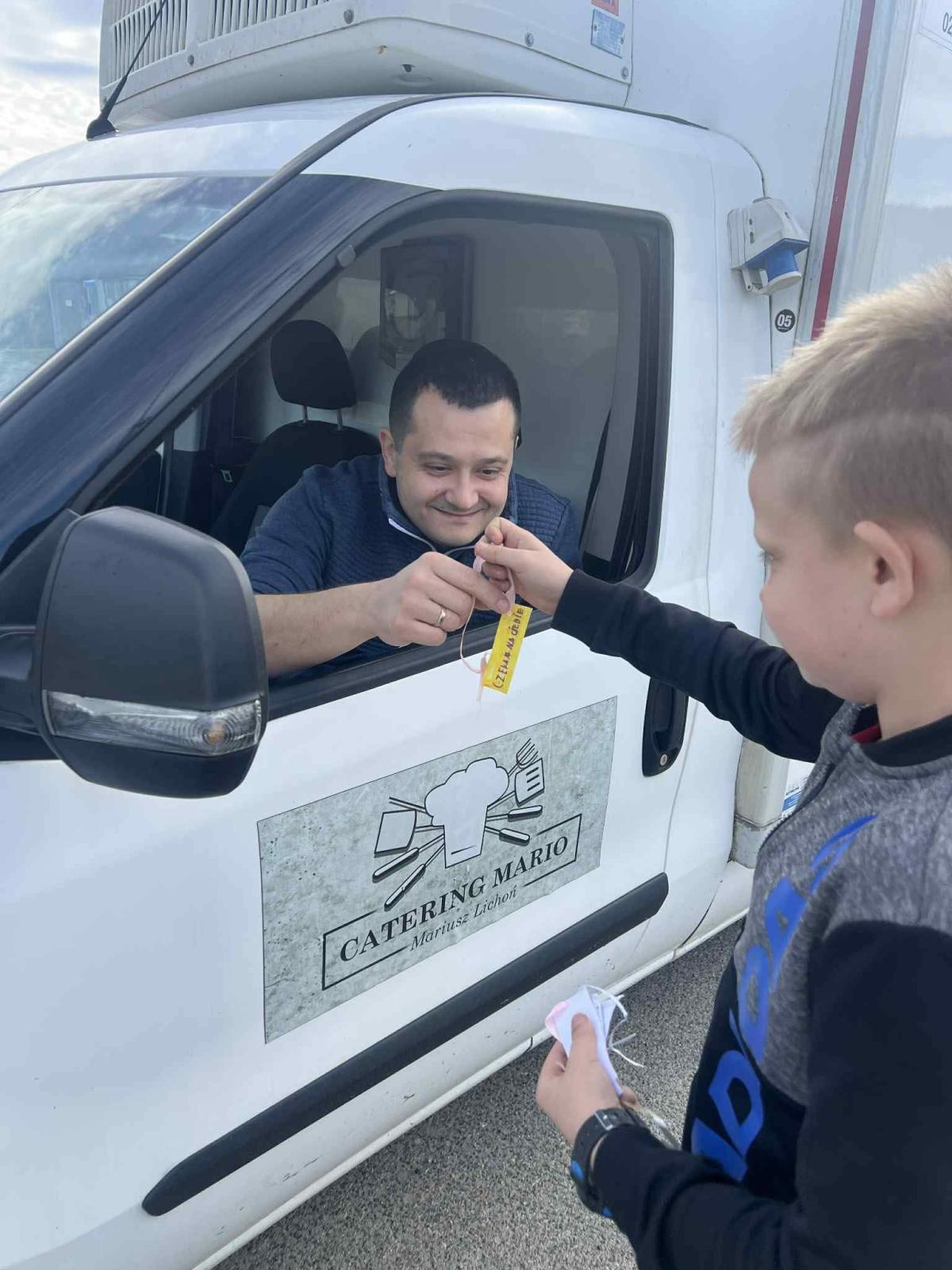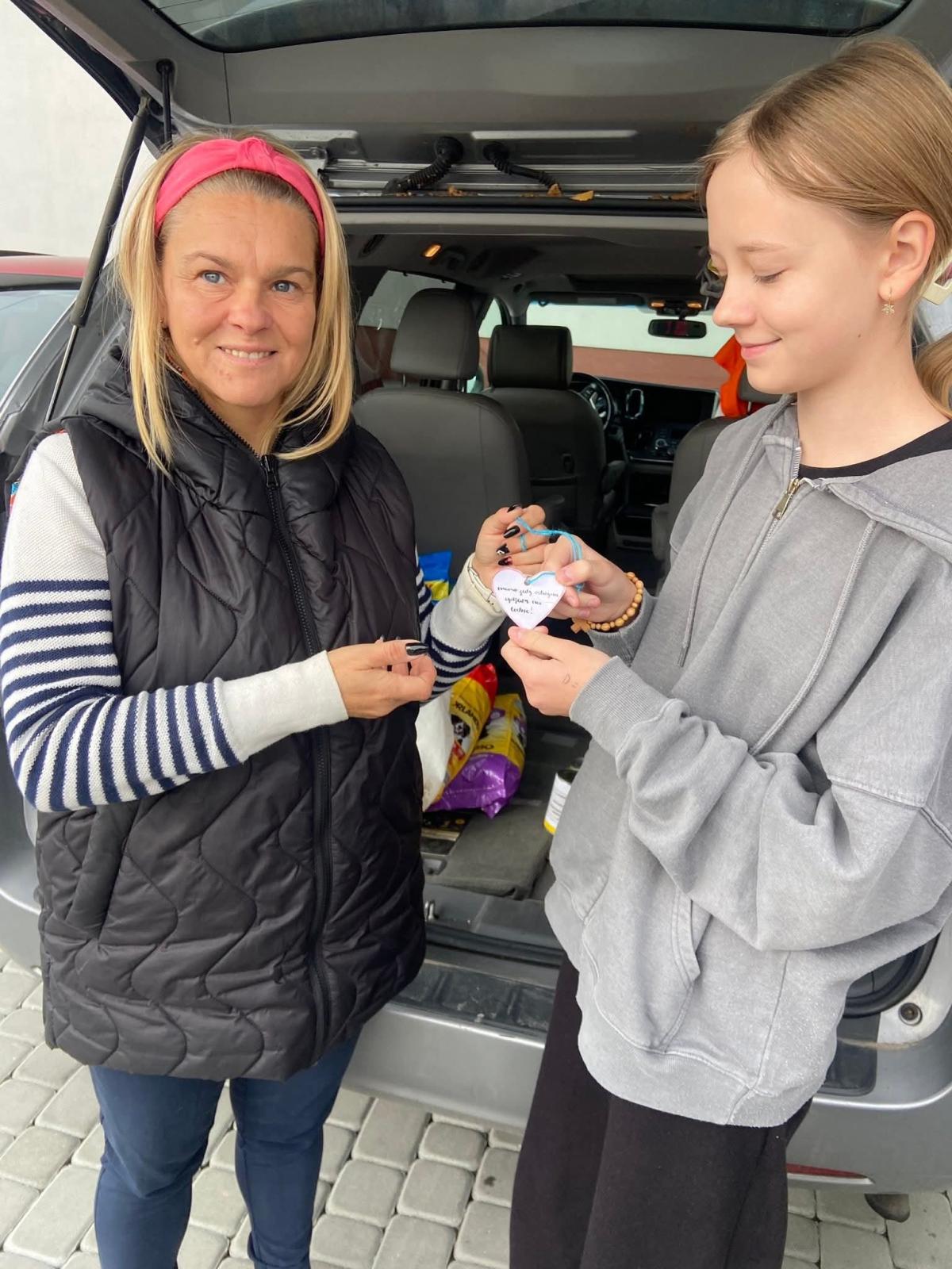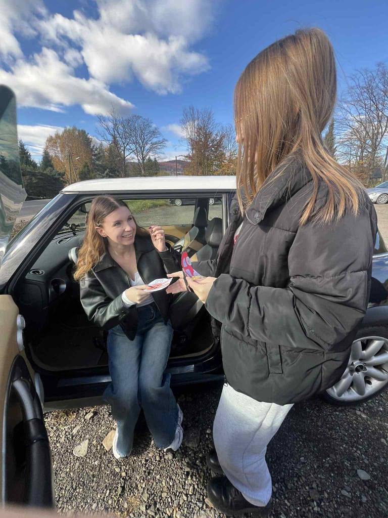 Klasa 7 rozdaje własnoręcznie robione ulotki