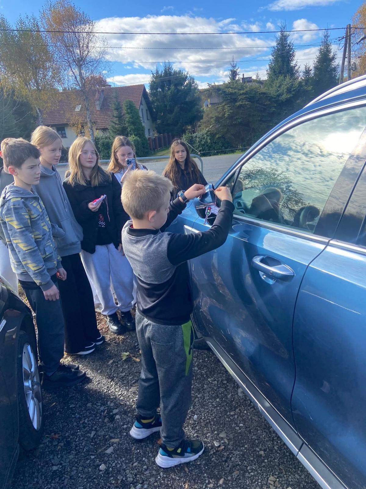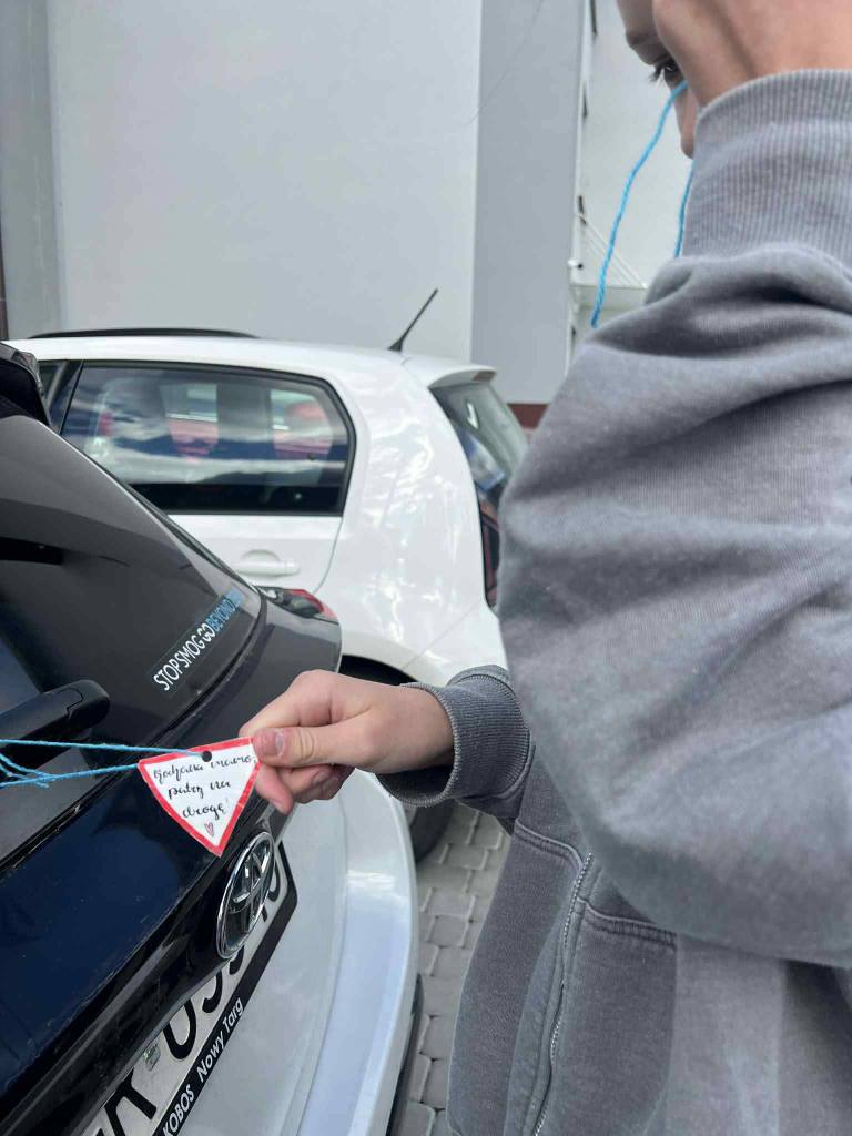 Uczniowie klasy 7 w ramach ogólnopolskiej akcji „Odblaskowa szkoła” wzięli udział w inicjatywie promującej bezpieczeństwo na drodze. Samodzielnie przygotowali, a następnie rozdawali dorosłym ulotki informacyjne dotyczące zasad bezpiecznego poruszania się po drogach. Celem przedsięwzięcia było zwiększenie świadomości społecznej na temat bezpieczeństwa pieszych oraz kształtowanie odpowiedzialnych postaw wśród uczestników ruchu drogowego