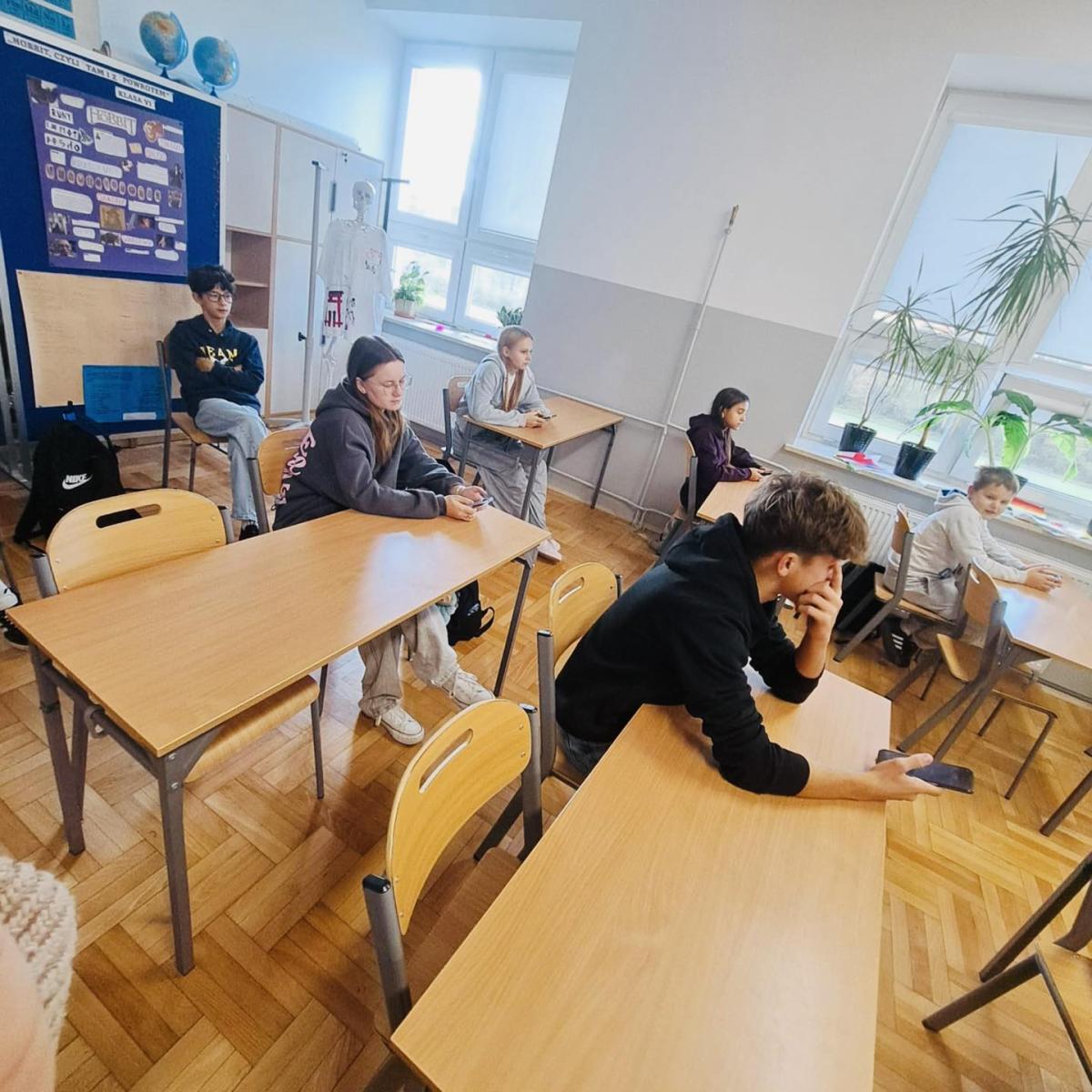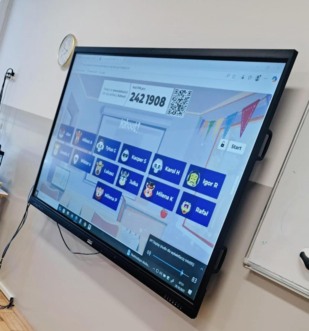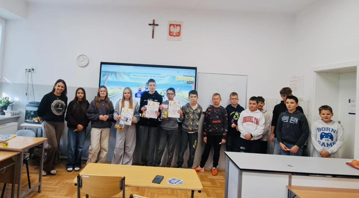 Dnia 29 października 2025 r., trzynastu uczniów naszej szkoły wzięło udział w interaktywnym quizie na temat bezpieczeństwa w ruchu drogowym. Do zabawy wykorzystano popularną aplikację Kahoot, dzięki której uczestnicy, korzystając ze swoich telefonów komórkowych, odpowiadali na pytania testowe wyświetlane na tablicy interaktywnej.
