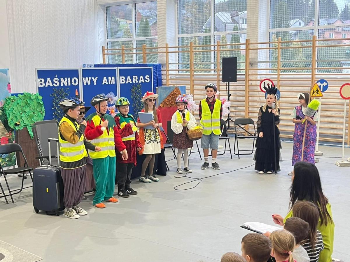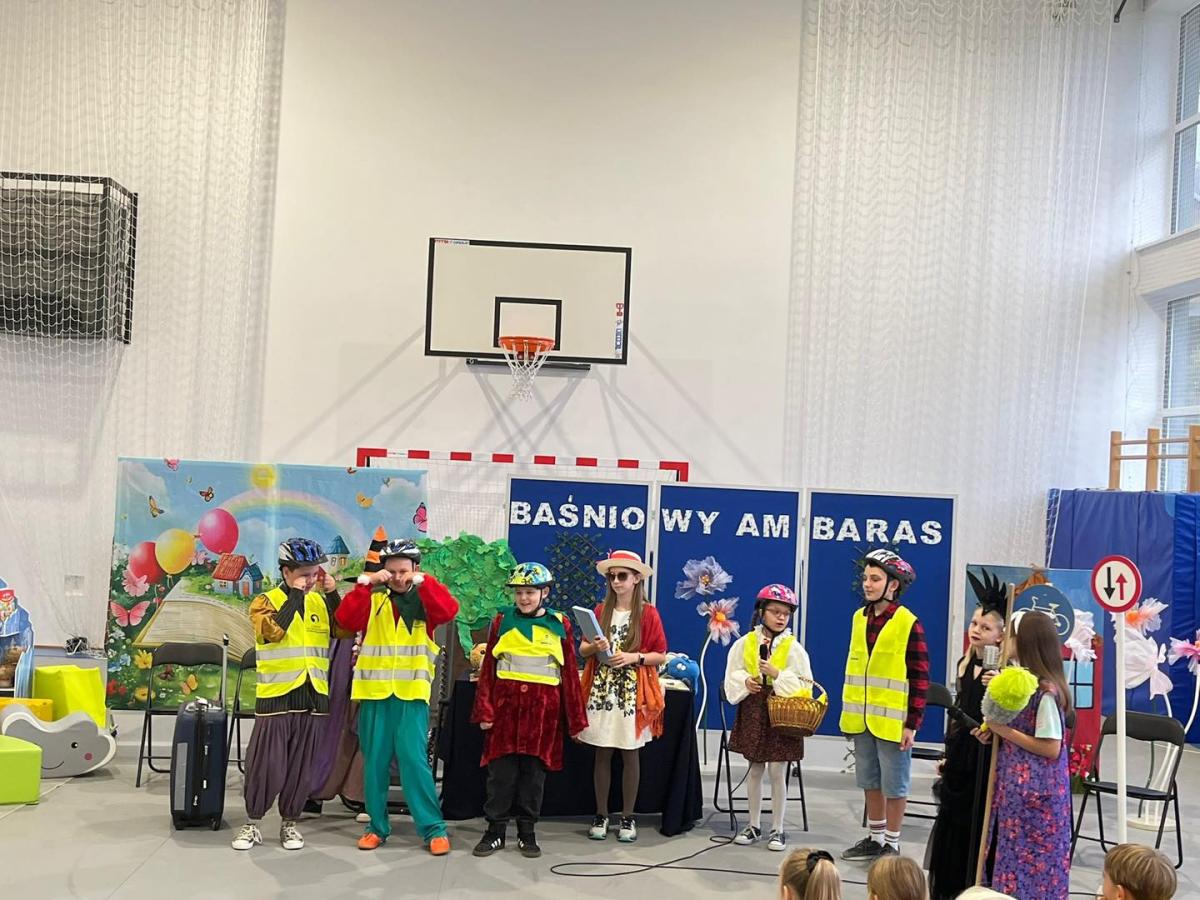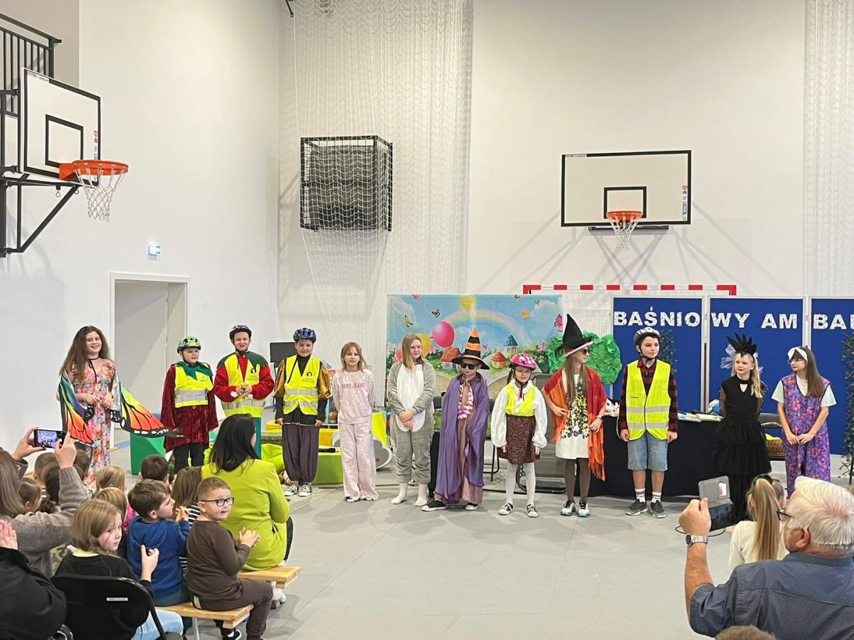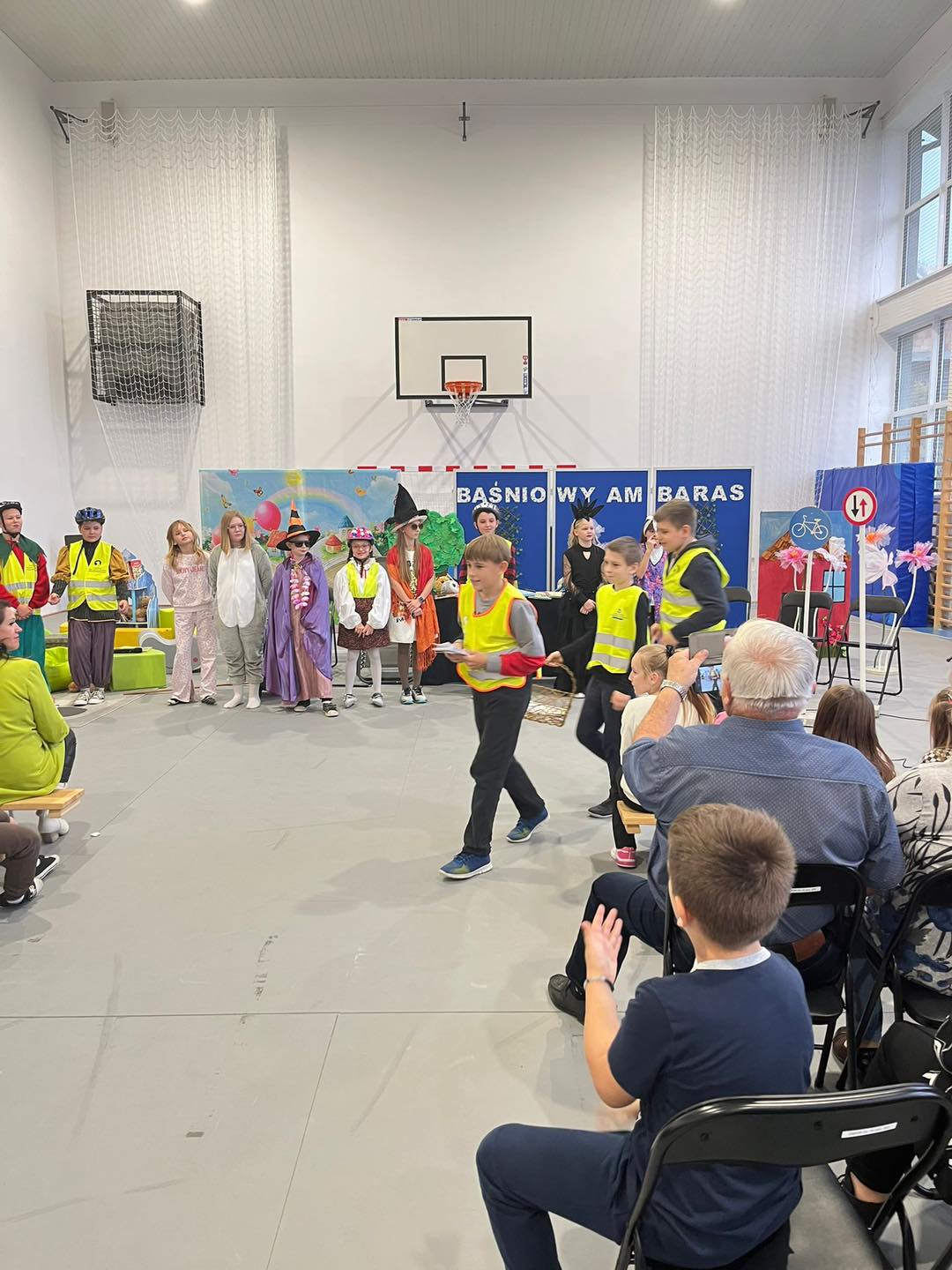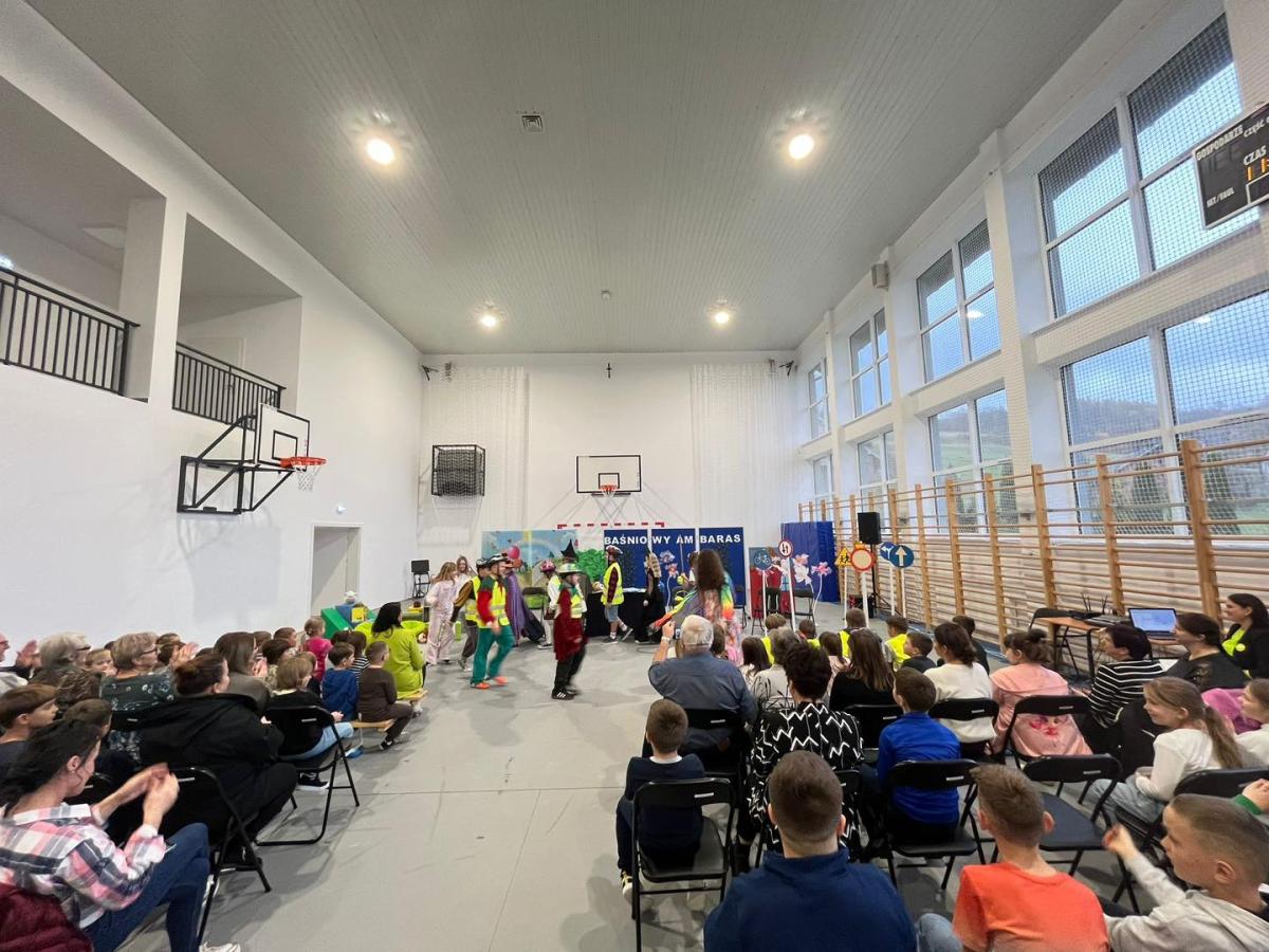 W spektaklu znalazły się także sceny nawiązujące do bezpieczeństwa w ruchu drogowym. Uczniowie przypomnieli, jak ważne jest przestrzeganie zasad na drodze, rozsądne zachowanie pieszych i kierowców, a przede wszystkim noszenie elementów odblaskowych po zmroku, które mogą uratować życie.