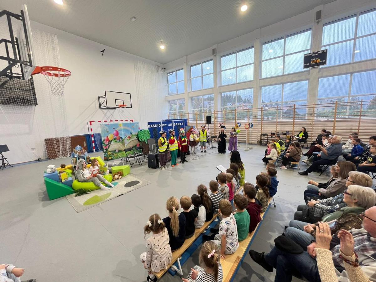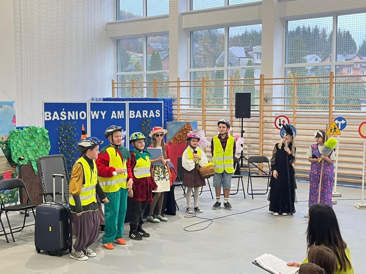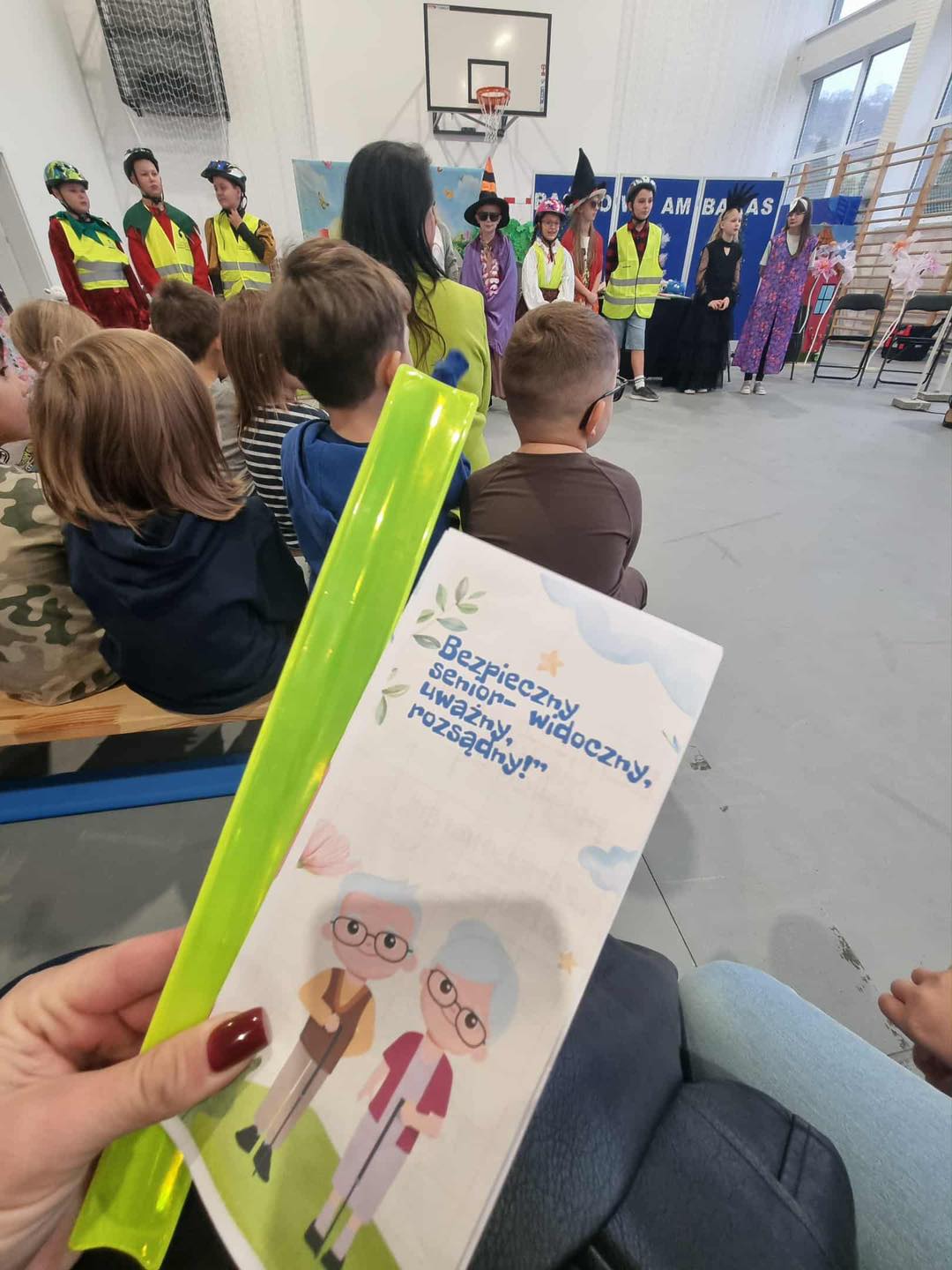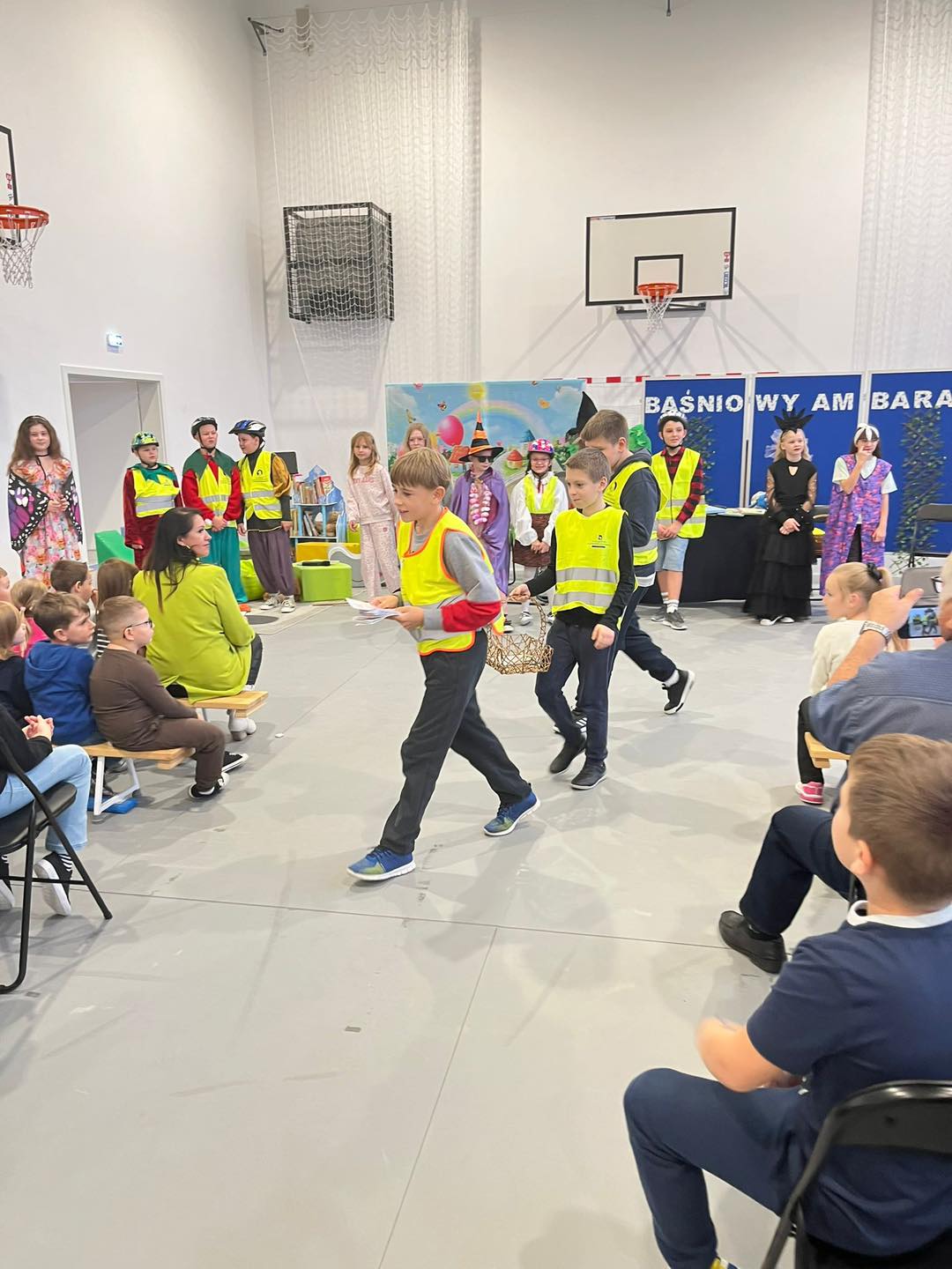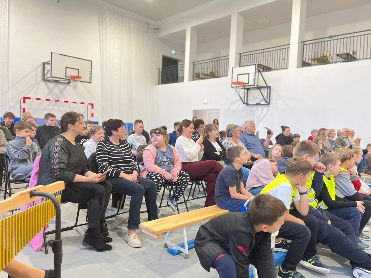 W spektaklu znalazły się także sceny nawiązujące do bezpieczeństwa w ruchu drogowym. Uczniowie przypomnieli, jak ważne jest przestrzeganie zasad na drodze, rozsądne zachowanie pieszych i kierowców, a przede wszystkim noszenie elementów odblaskowych po zmroku, które mogą uratować życie.