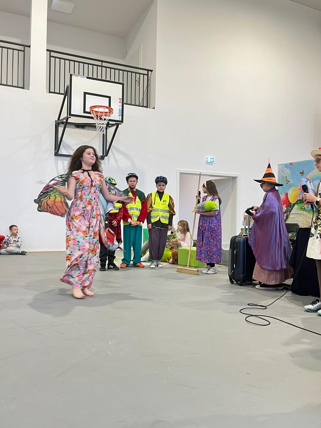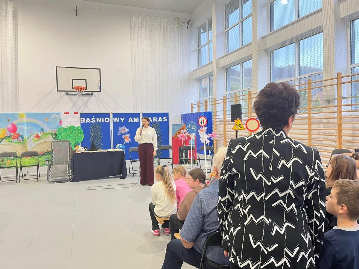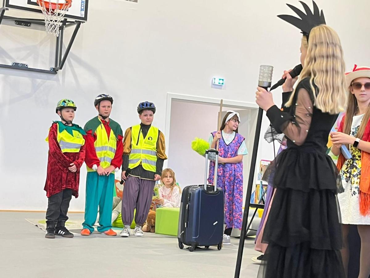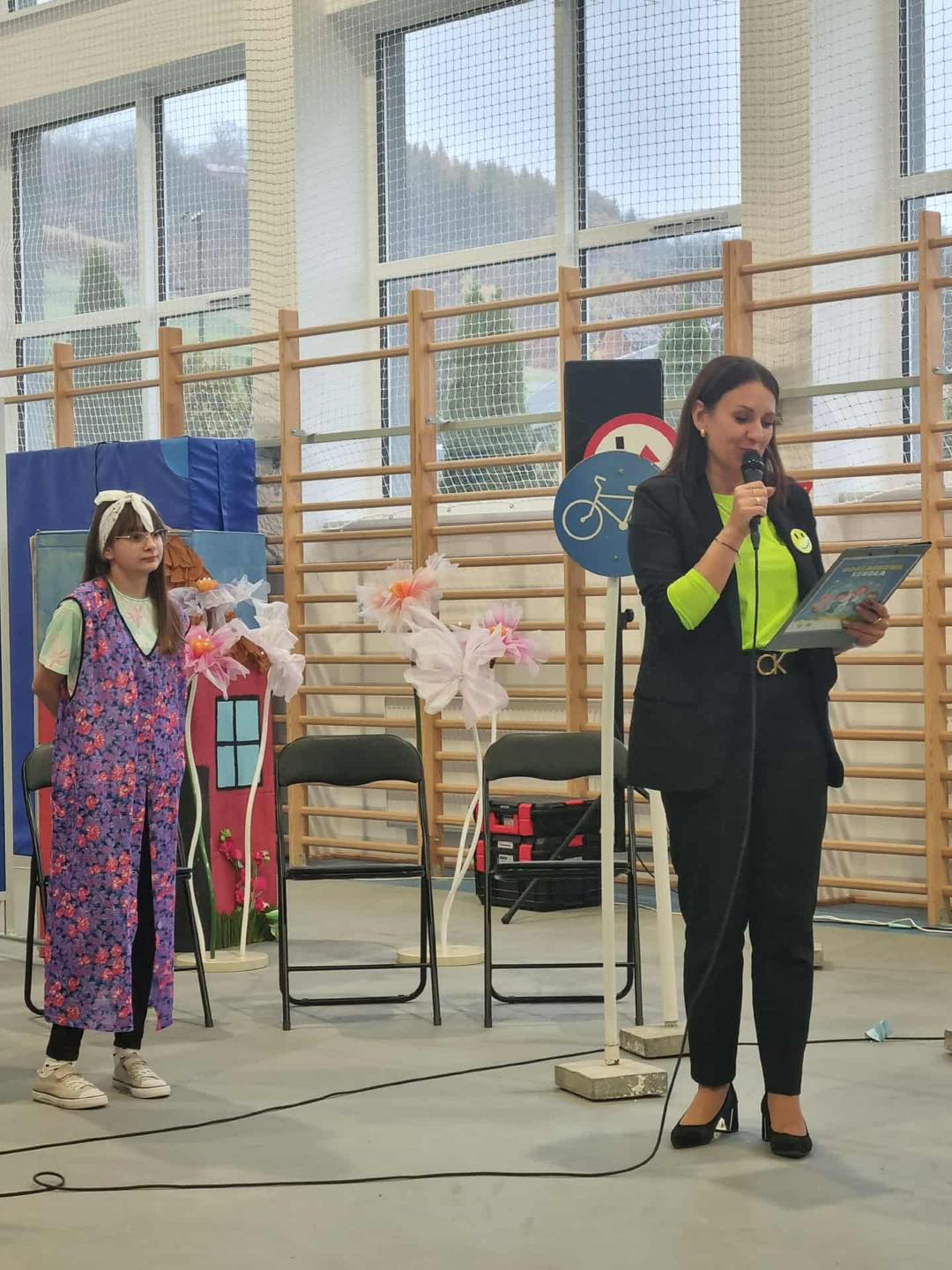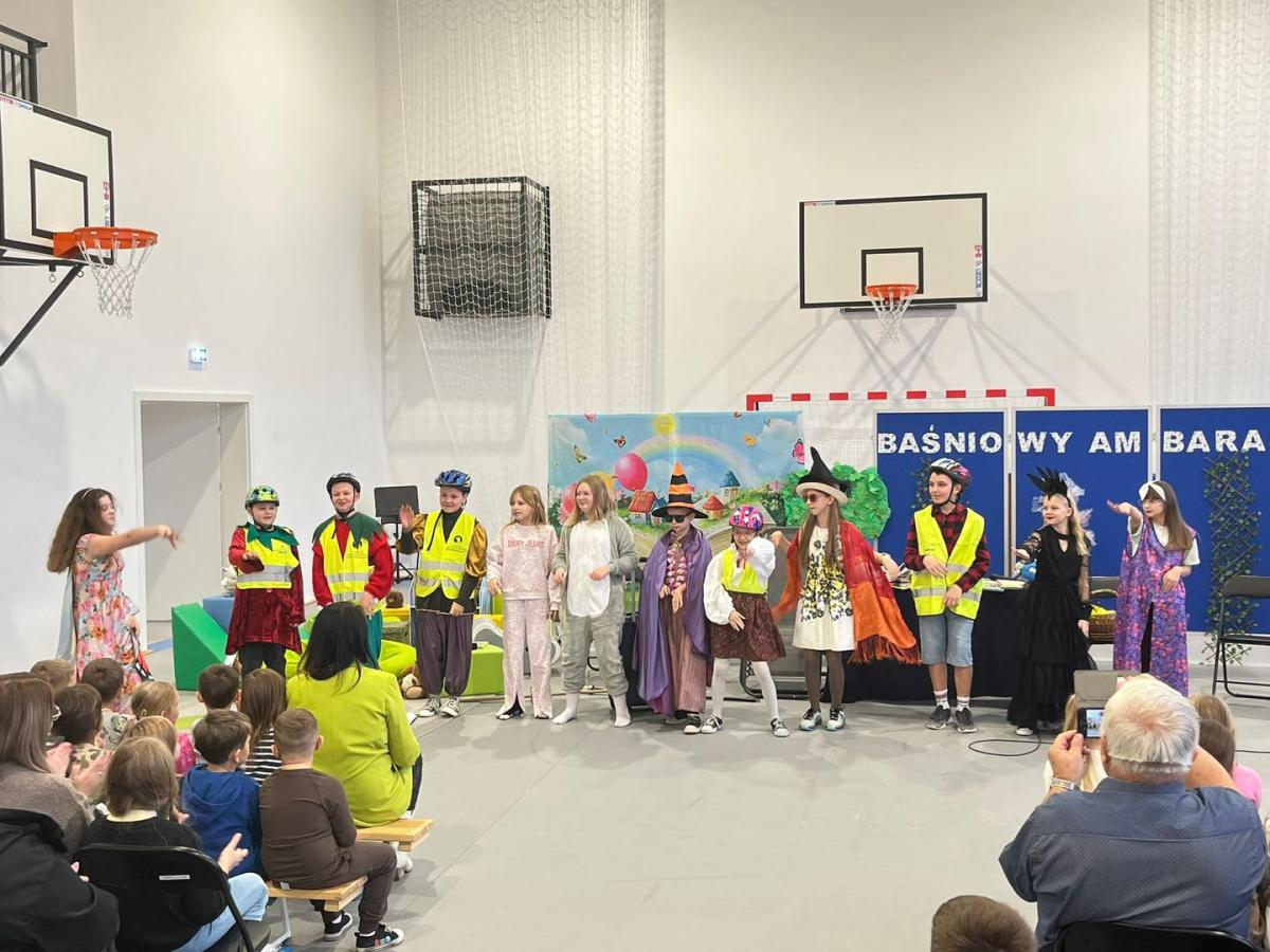 W spektaklu znalazły się także sceny nawiązujące do bezpieczeństwa w ruchu drogowym. Uczniowie przypomnieli, jak ważne jest przestrzeganie zasad na drodze, rozsądne zachowanie pieszych i kierowców, a przede wszystkim noszenie elementów odblaskowych po zmroku, które mogą uratować życie.