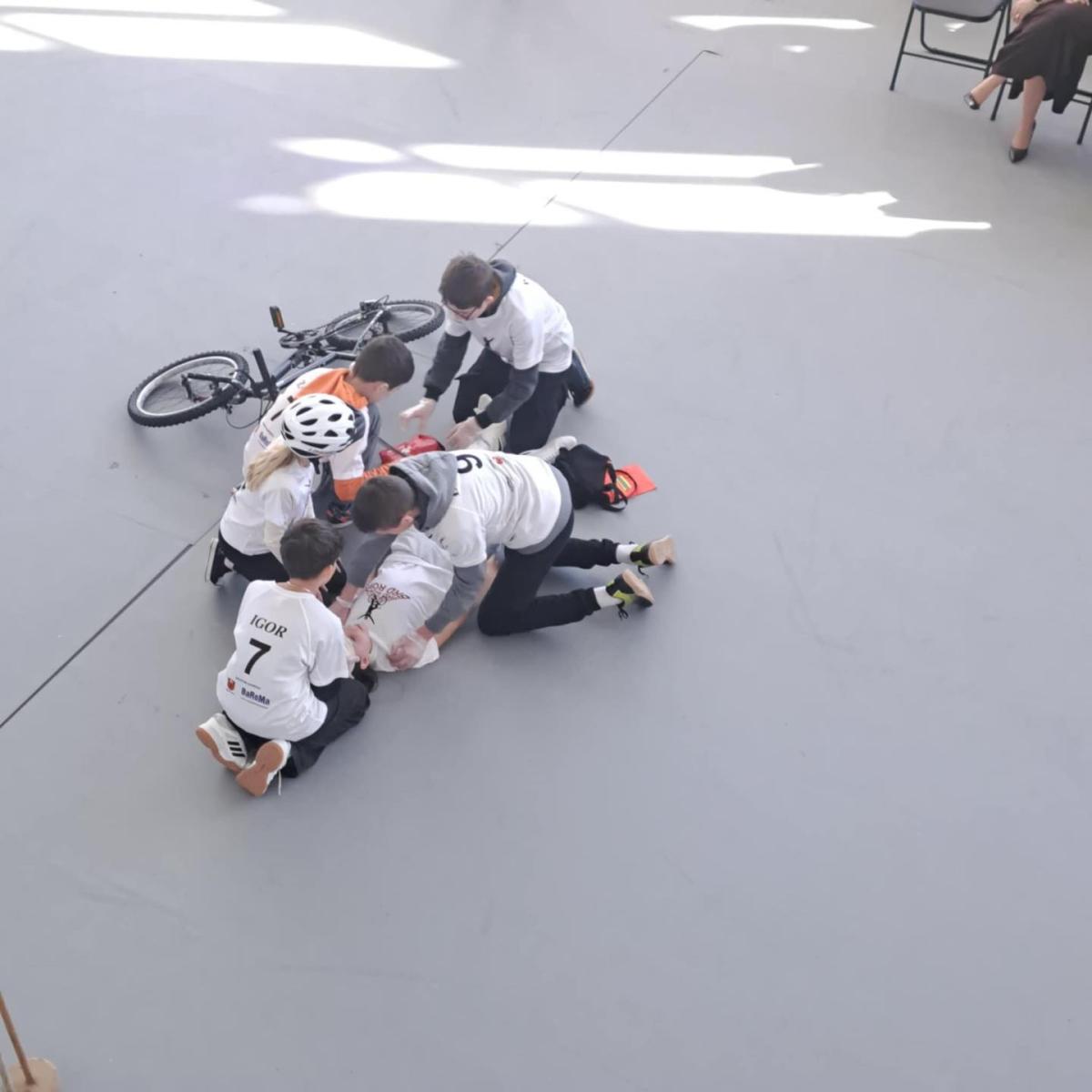 Swoje umiejętności zaprezentowała także szkolna Grupa BRD, pod opieką pana trenera Grzegorza Mliczek, która pokazała przejazd po torze sprawnościowym oraz zademonstrowała, jak udzielać pierwszej pomocy przedmedycznej – przypominając wszystkim, jak ważna jest wiedza i szybka reakcja w sytuacjach zagrożenia.