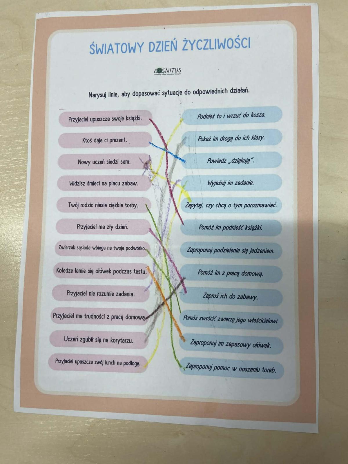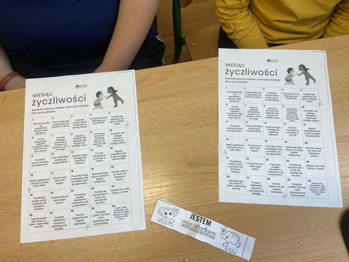 Pani pedagog przeprowadziła w różnych klasach inspirujące rozmowy pod hasłem „Życzliwość zaczyna się od rozmowy”. Uczniowie mieli okazję zastanowić się, czym jest dobroć i jak można ją okazywać na co dzień.