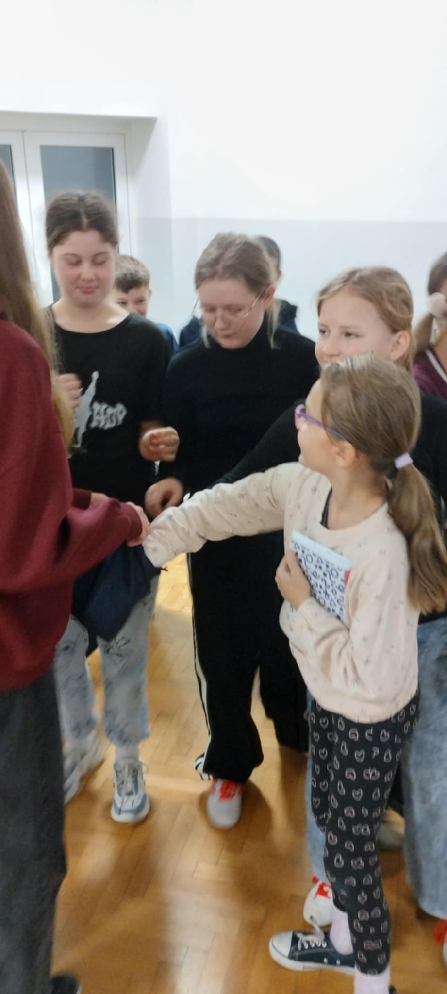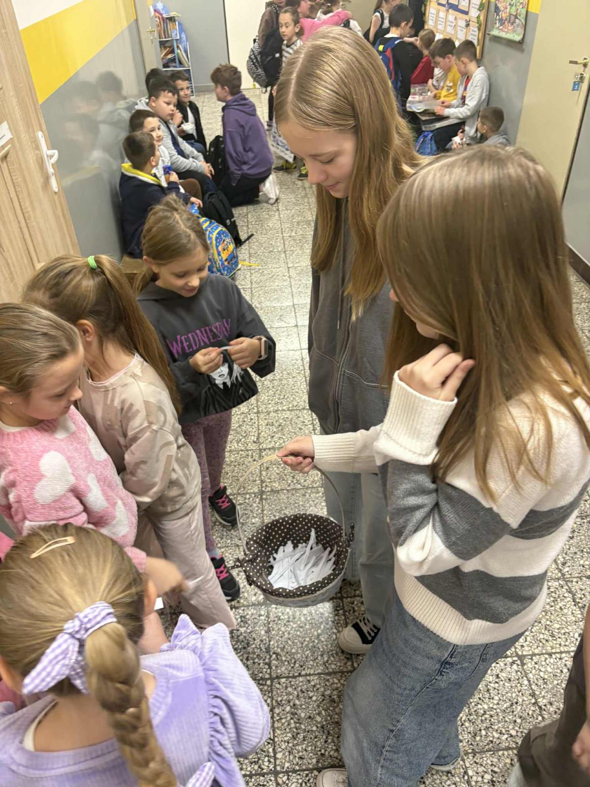 Uczniowie klas VII i VIII przygotowali akcję „Mały gest – wielka zmiana”. Każdy losował zadanie do wykonania w ciągu dnia – od pomocy koledze, po powiedzenie komuś miłego słowa. Dzięki temu w szkole panowała wyjątkowa atmosfera wzajemnej życzliwości.