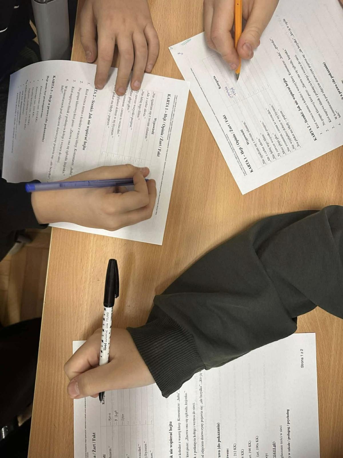 W dniu 18 listopada w klasach VI i VII odbyły się warsztaty z zakresu edukacji przeciw przemocy rówieśniczej w ramach realizowanego w naszej szkole projektu: "Skrzydła Młodzieży: Rozwijanie Kompetencji i Więzi Społecznych" przy współpracy ze Stowarzyszeniem "Skrawek Nieba" w Łosiu. Warsztaty prowadziła Pani CoachIt Agnieszka Barszcz - edukatorka i certyfikowana trenerka rozwoju osobistego. Zajęcia miały na celu zwiększenie świadomości uczniów na temat hejtu, cyberprzemocy oraz mobbingu rówieśniczego, a także rozwijanie empatii i umiejętności bezpiecznej reakcji na krzywdzące zachowania.