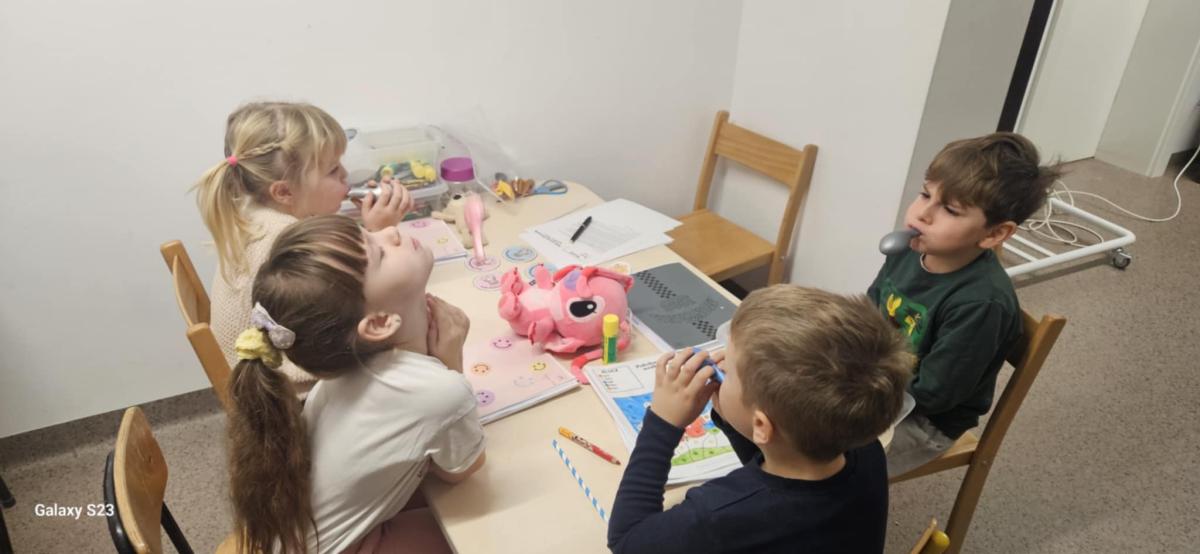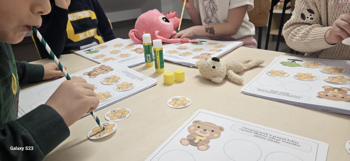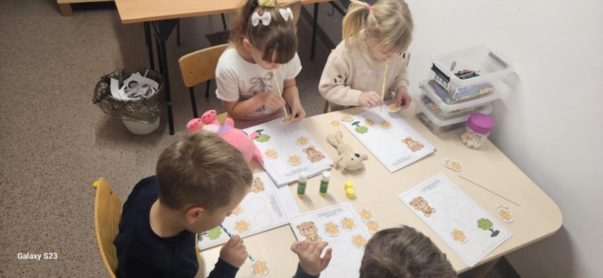 Na zajęciach logopedycznych misie stały się bohaterami ćwiczeń i zabaw.
