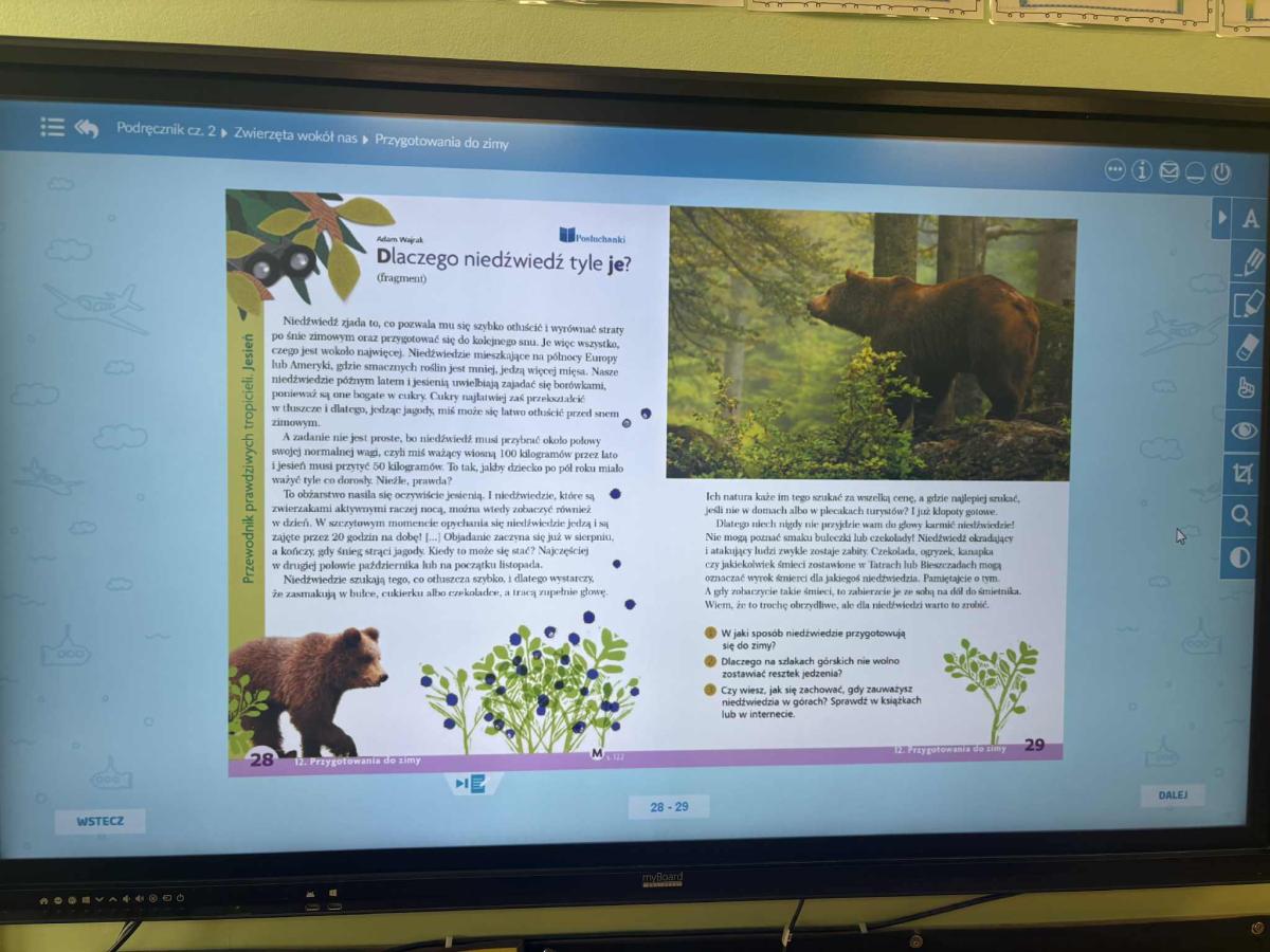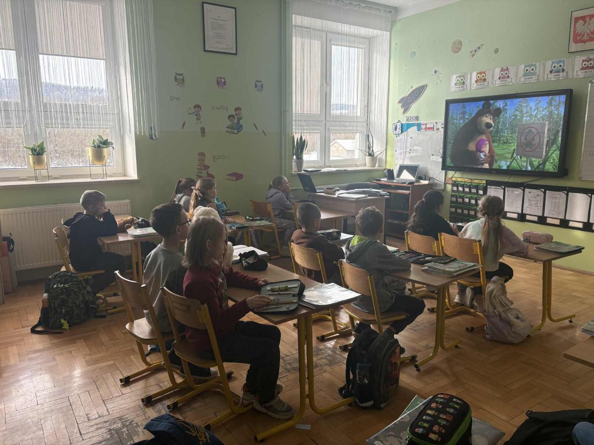 Uczniowie klasy 2 obejrzeli bajkę o misiach i uczestniczyli w zajęciach edukacyjnych poświęconych prawdziwym niedźwiadkom.