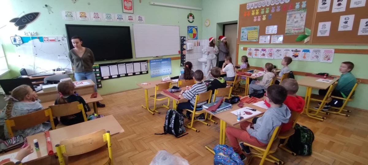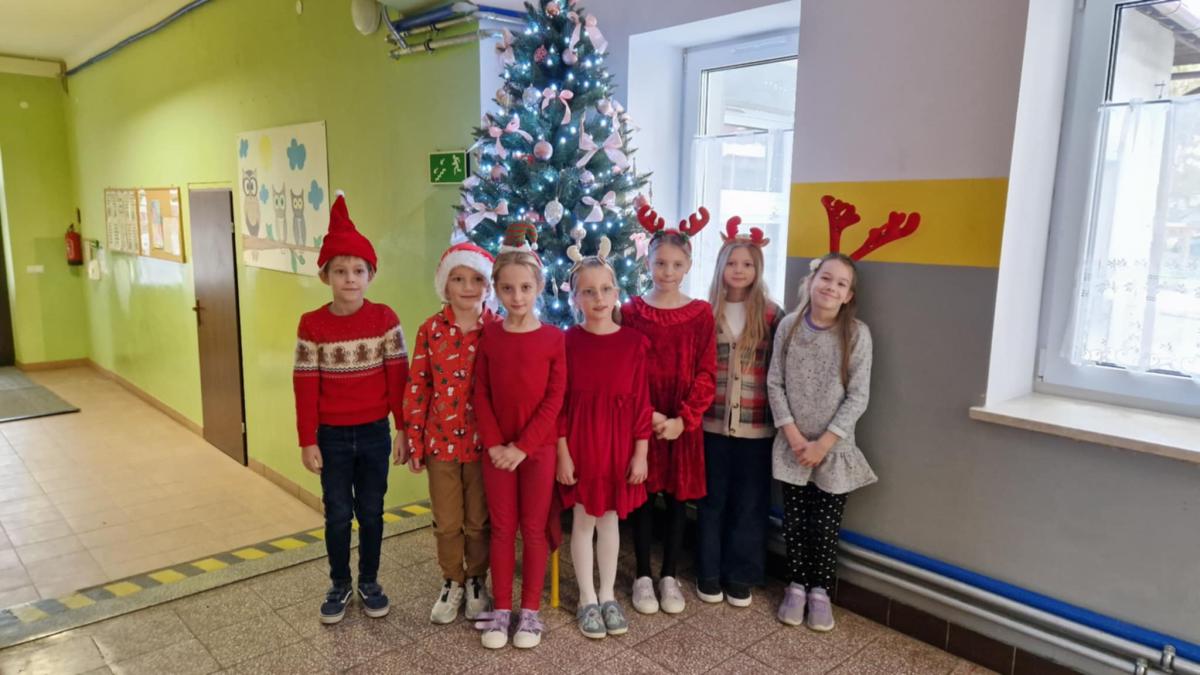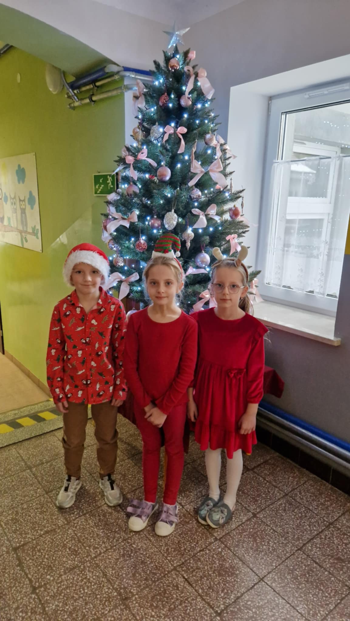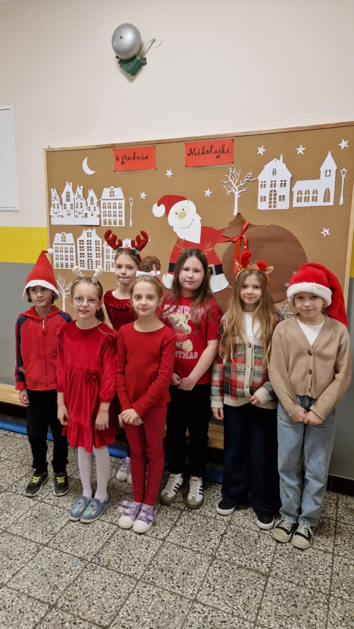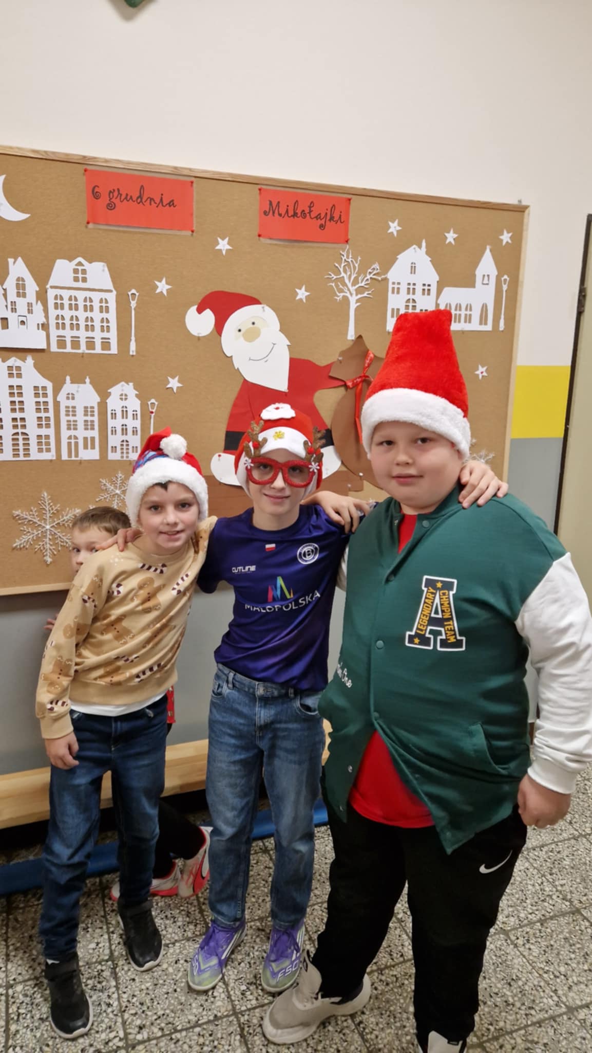 Całość dopełniły stroje – wielu uczniów i nauczycieli przyszło w pięknych czapkach mikołajowych, które dodały uroku i podkreśliły wyjątkowy charakter dnia. Korytarze szkoły wypełniły się czerwienią, uśmiechem i świątecznym klimatem.