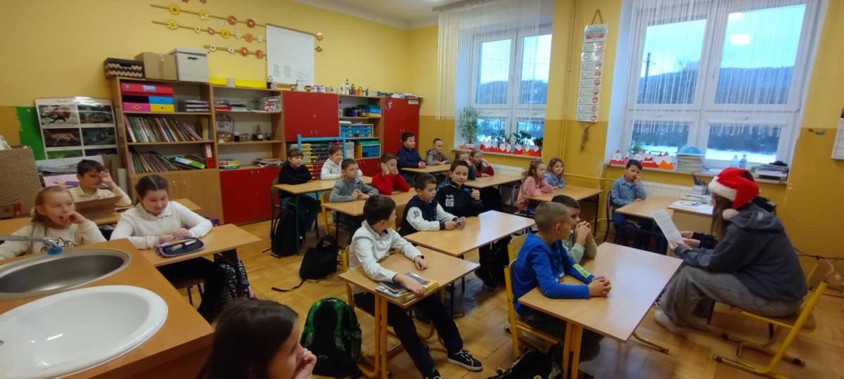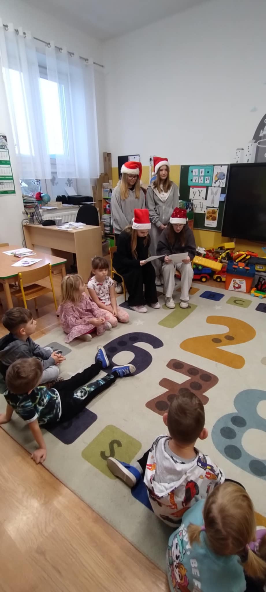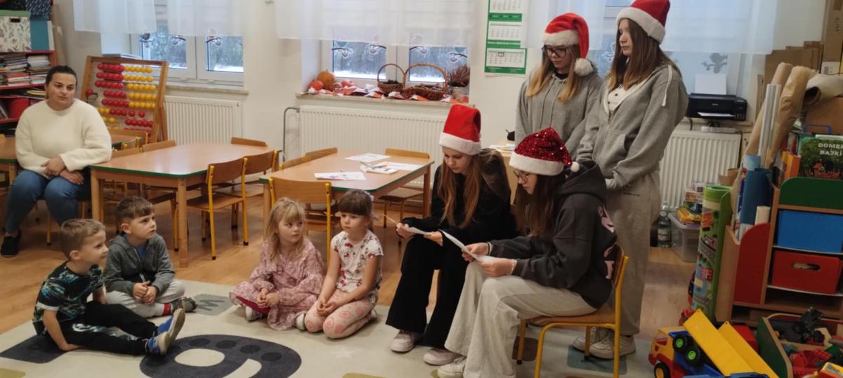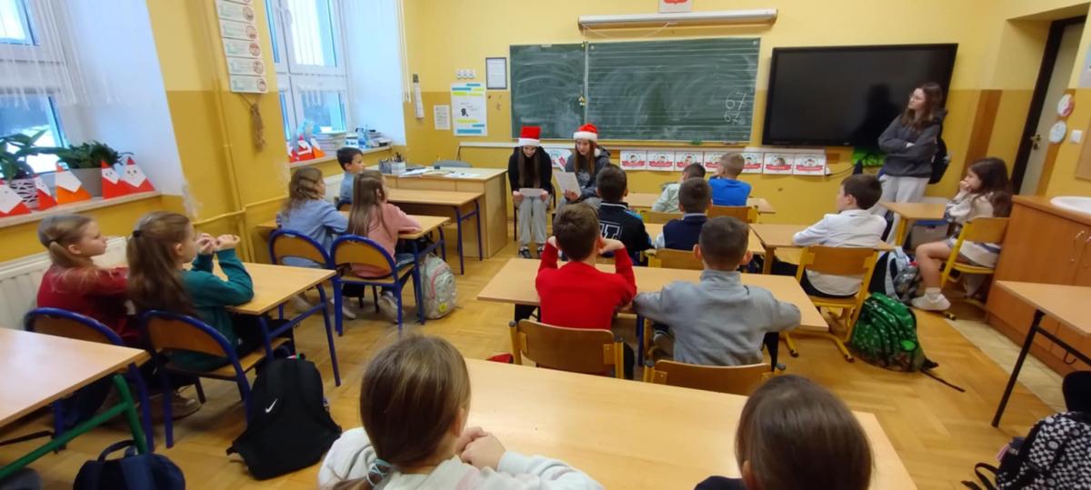 W naszej szkole zapanowała wyjątkowa, świąteczna atmosfera. Z okazji Mikołajek starsi uczniowie odwiedzili młodszych kolegów i koleżanki w przedszkolu oraz klasach 1–3, aby przeczytać im bajki i opowieści o historii Świętego Mikołaja. Była to piękna lekcja tradycji i dobroci, która pokazała, że warto dzielić się radością i wiedzą.