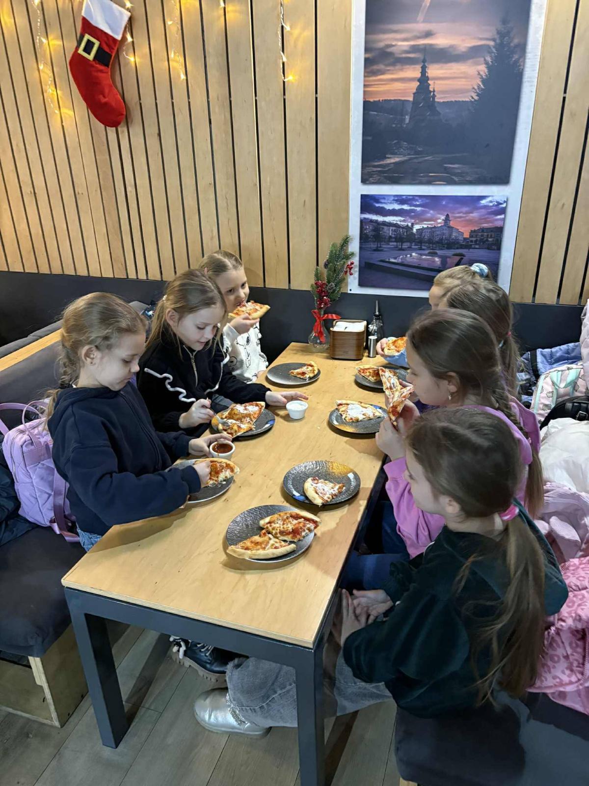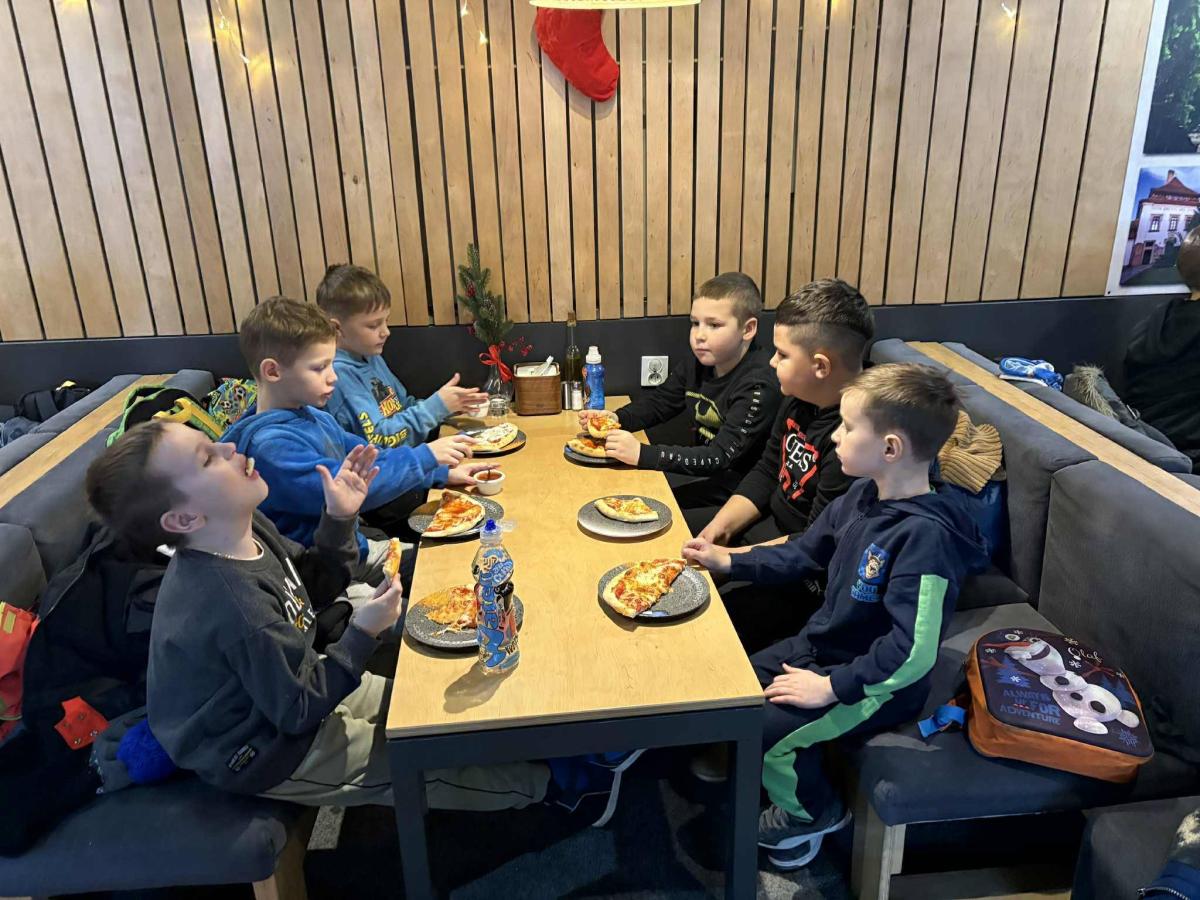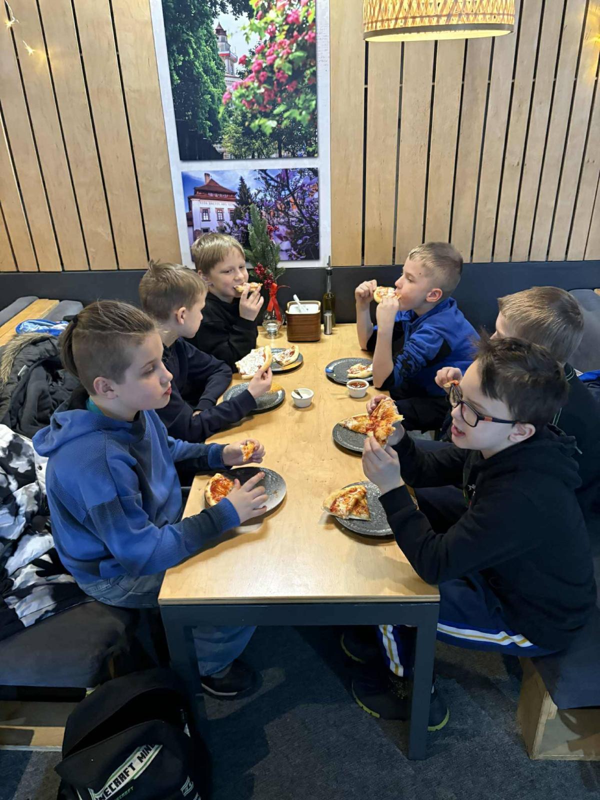 Na zakończenie wycieczki uczniowie udali się na wspólny posiłek do pizzerii, co było miłym akcentem kończącym dzień pełen wrażeń i dobrej zabawy.
