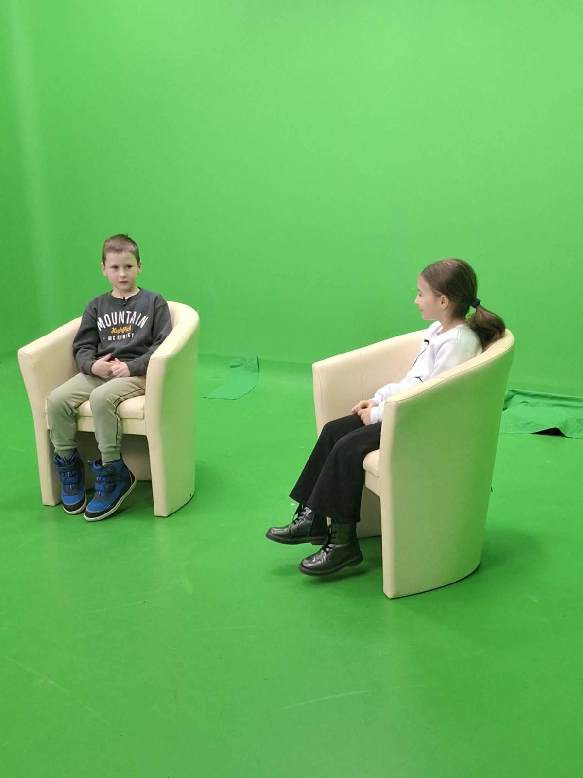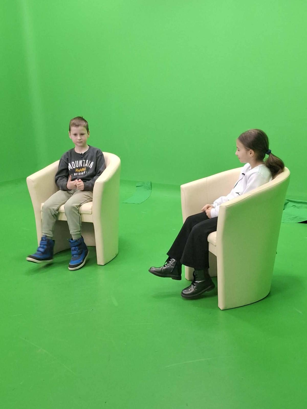 Podczas warsztatów dzieci miały również okazję spróbować swoich sił przed kamerą, co było dla nich niezwykle ciekawym i inspirującym doświadczeniem. Zajęcia rozwijały kreatywność, pewność siebie oraz umiejętności komunikacyjne uczniów.