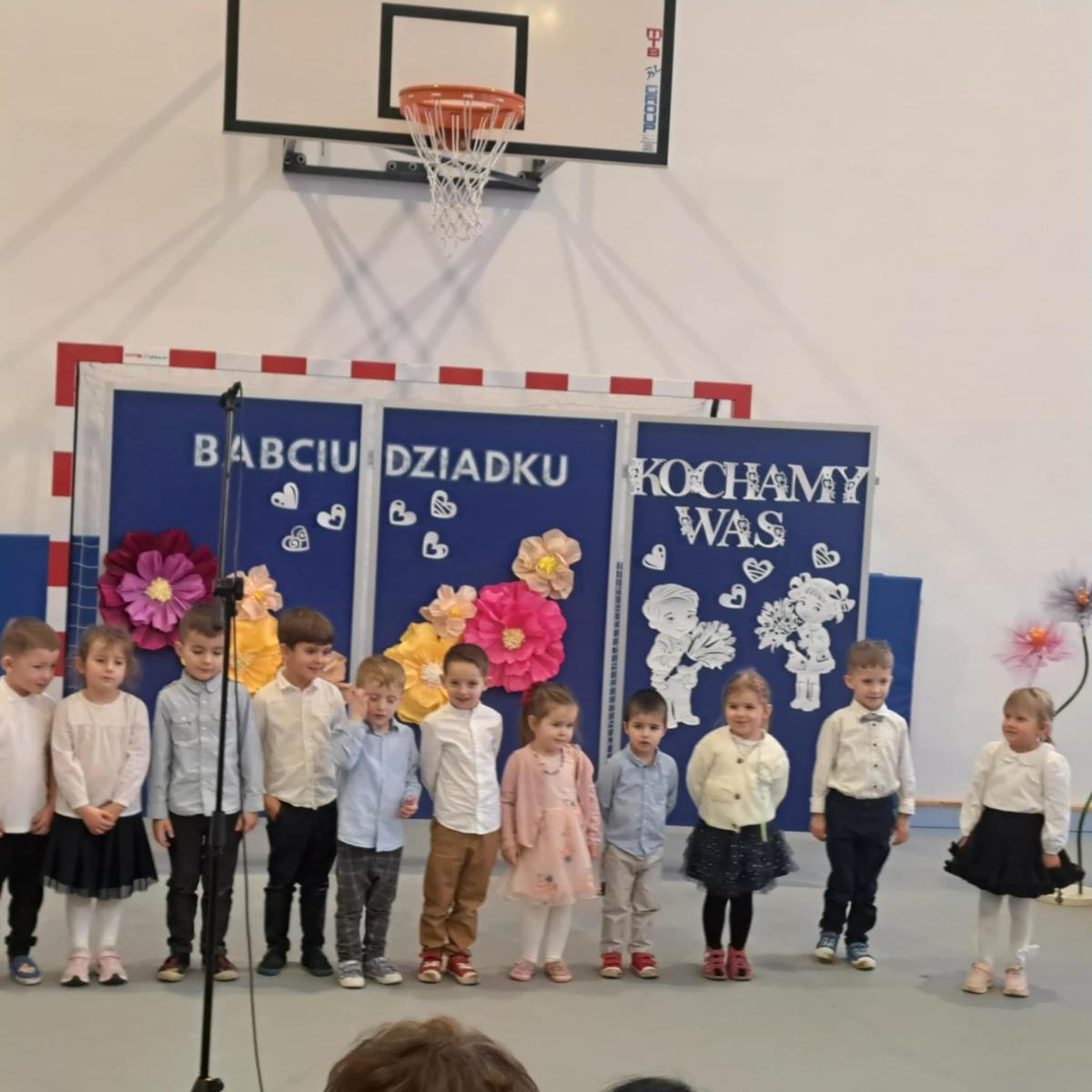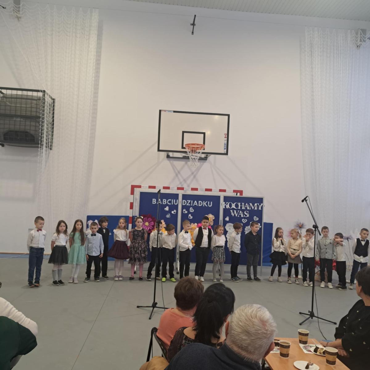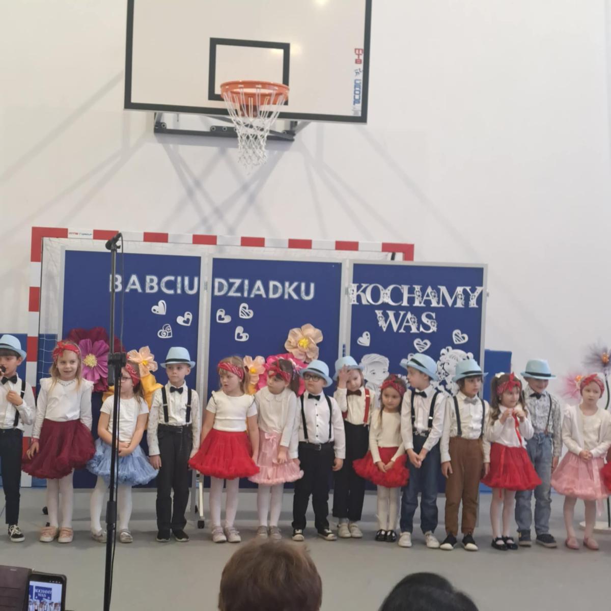Uroczystość rozpoczęła się częścią artystyczną w wykonaniu uczniów klas I–III. Młodzi artyści zaprezentowali starannie przygotowany program, na który złożyły się recytacje, piosenki oraz układy taneczne, nagradzane gromkimi brawami. Następnie na scenie wystąpiły przedszkolaki, które z wielkim zaangażowaniem i radością zaprezentowały swoje umiejętności wokalne i taneczne, składając jednocześnie serdeczne życzenia wszystkim babciom i dziadkom.
