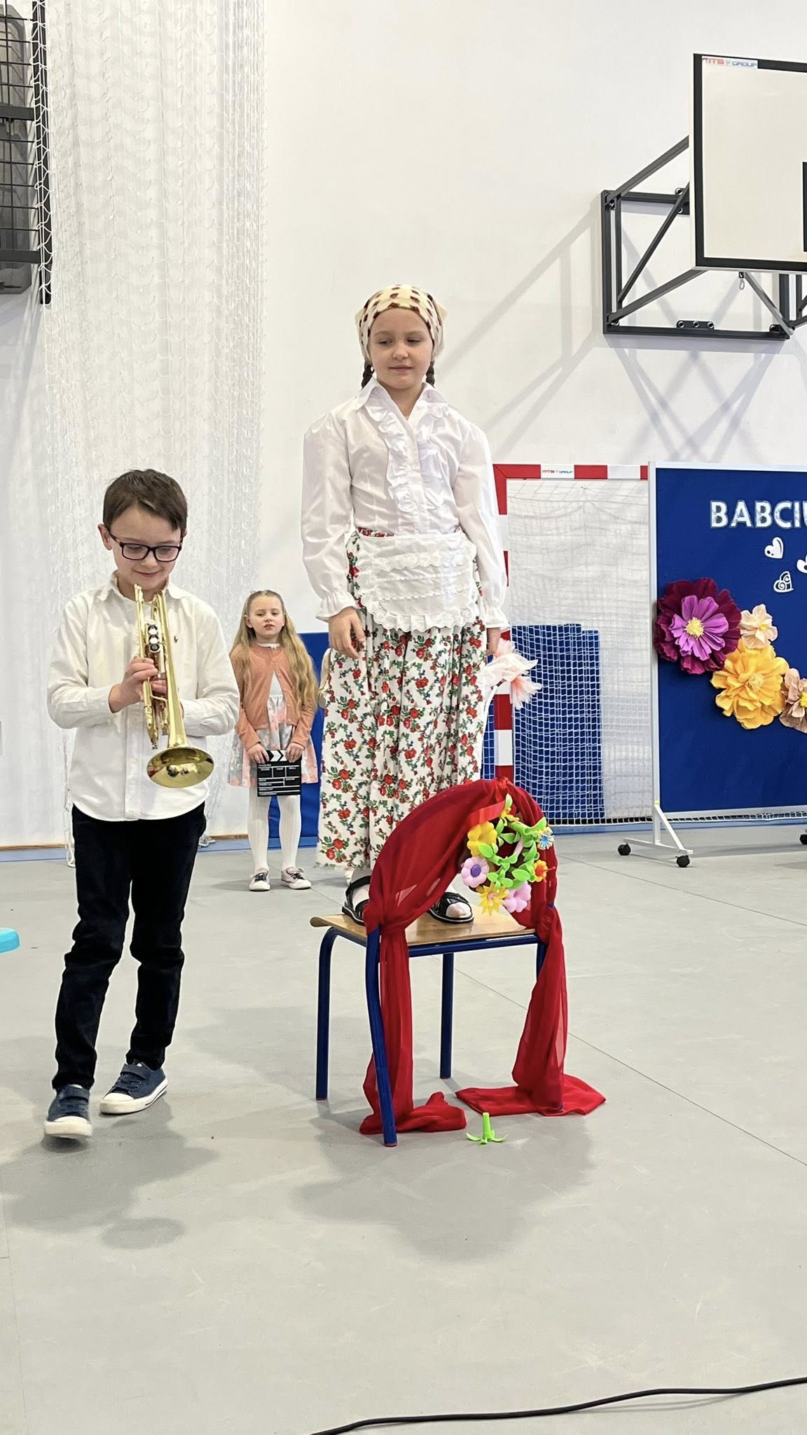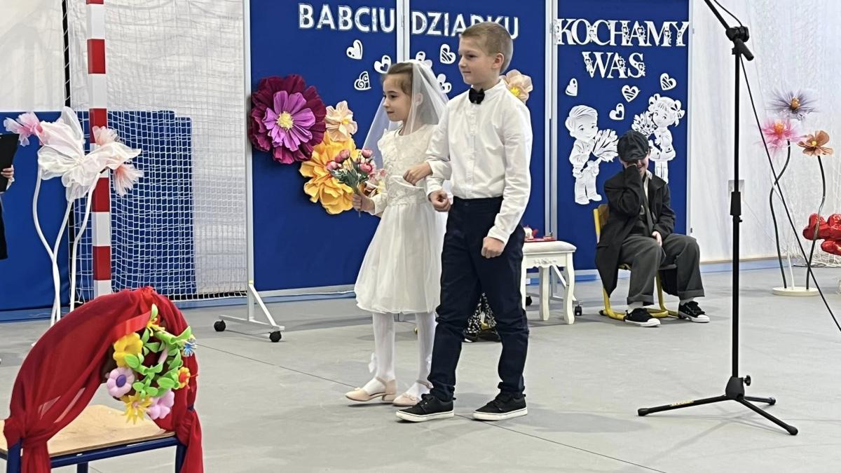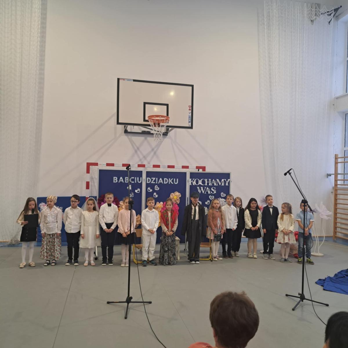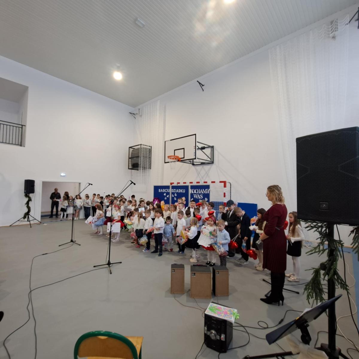 Uroczystość rozpoczęła się częścią artystyczną w wykonaniu uczniów klas I–III. Młodzi artyści zaprezentowali starannie przygotowany program, na który złożyły się recytacje, piosenki oraz układy taneczne, nagradzane gromkimi brawami. Następnie na scenie wystąpiły przedszkolaki, które z wielkim zaangażowaniem i radością zaprezentowały swoje umiejętności wokalne i taneczne, składając jednocześnie serdeczne życzenia wszystkim babciom i dziadkom.