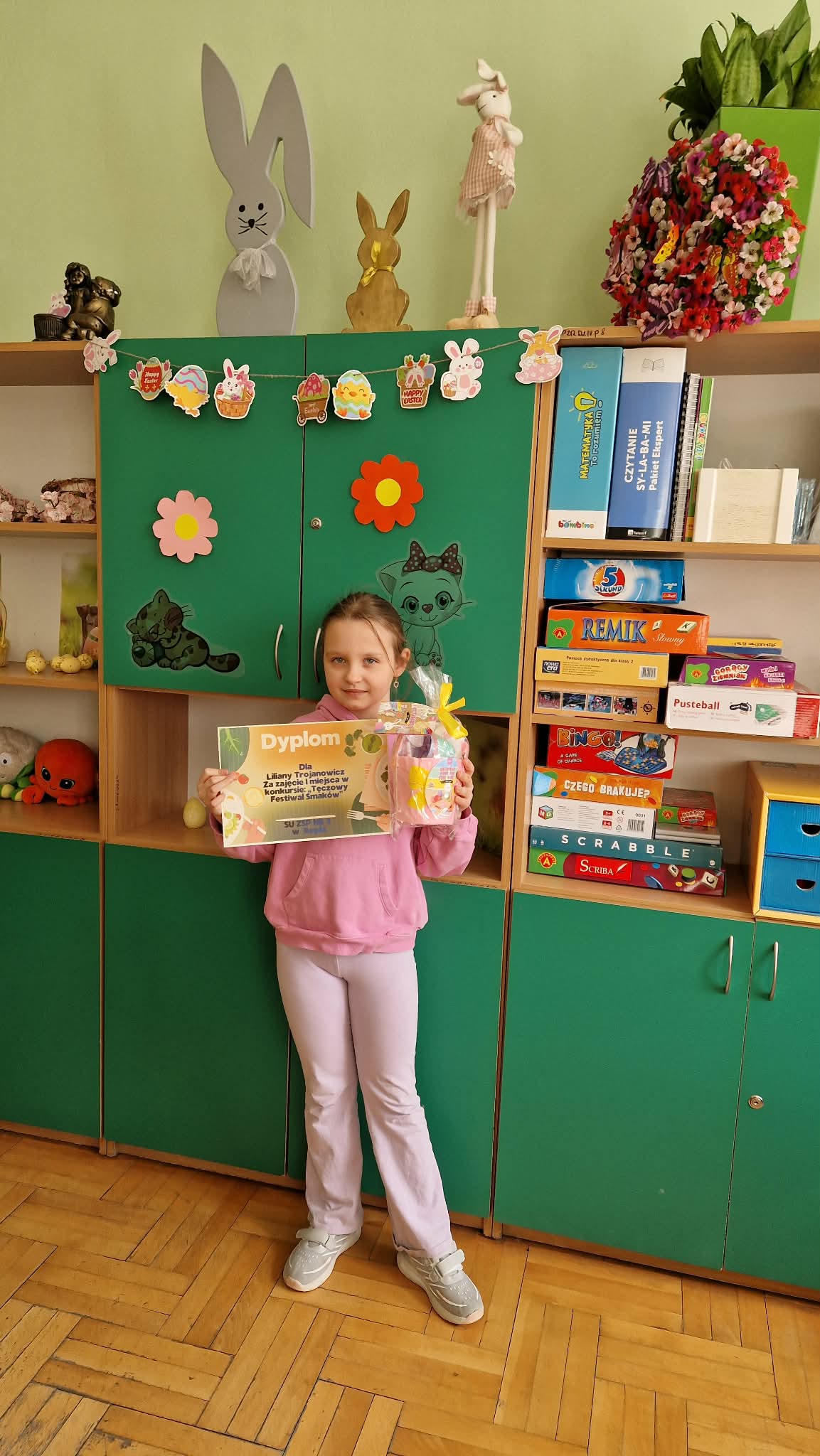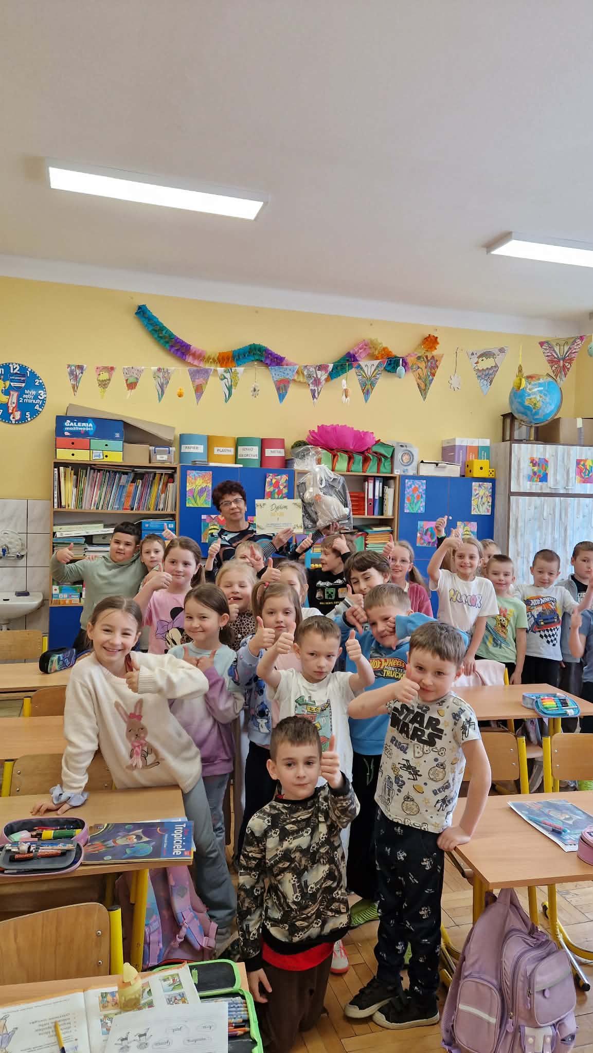 Za wyjątkowe zaangażowanie uczniów, wychowawczyni oraz rodziców. Sala zachwyciła świeżością, pomysłowością i wiosenną atmosferą.
