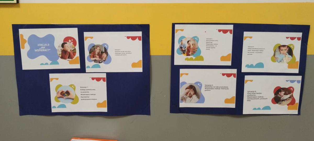 Edukacyjne stacje na szkolnych korytarzach.
