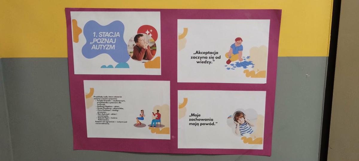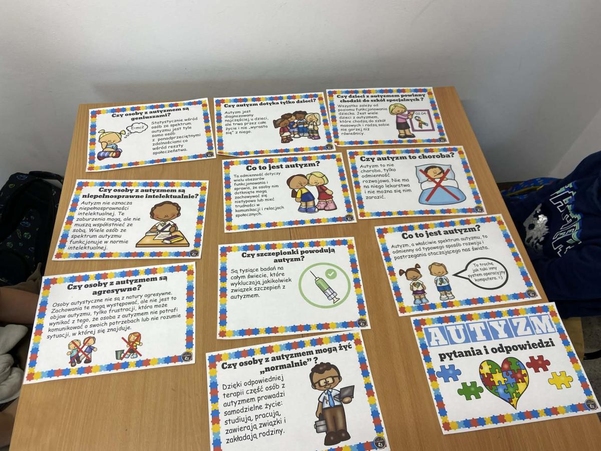 Z tej okazji pani pedagog przeprowadziła w klasach pogadanki na temat autyzmu, podczas których uczniowie poznali podstawowe informacje o funkcjonowaniu osób w spektrum, sposobach wspierania ich na co dzień oraz znaczeniu akceptacji i otwartości. Była to cenna okazja do rozmowy, zadawania pytań i rozwijania wrażliwości społecznej.