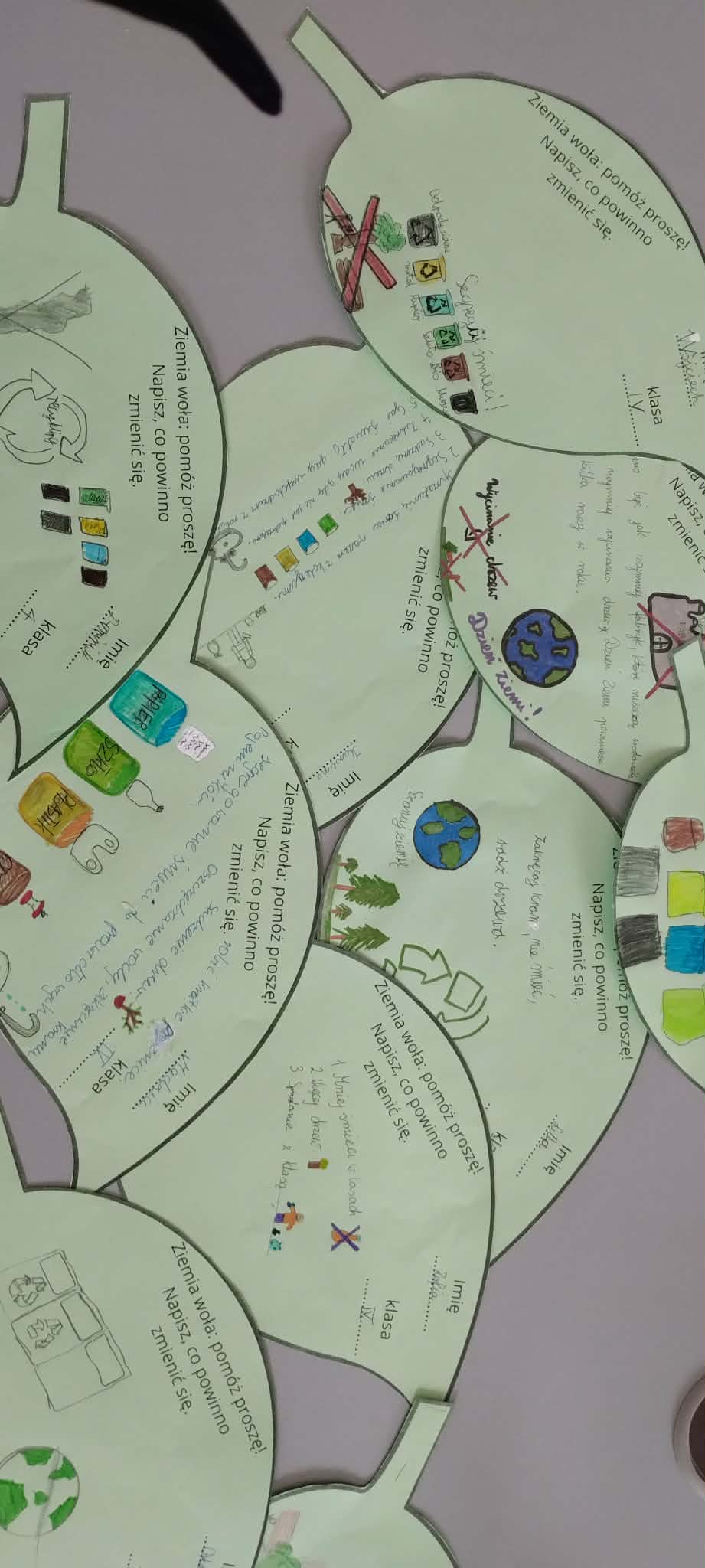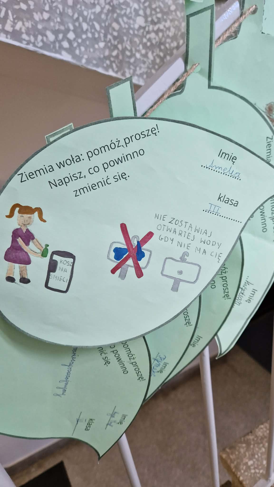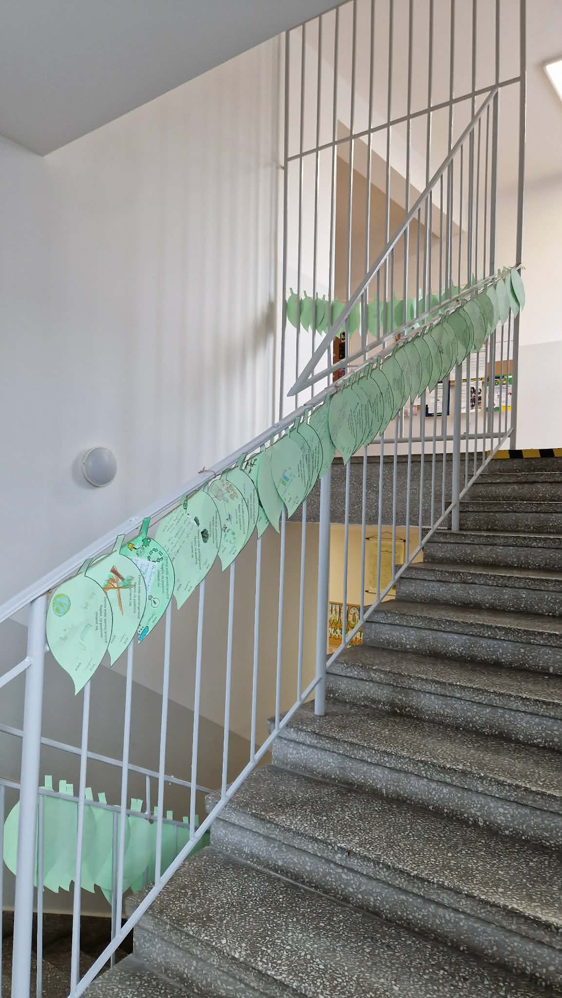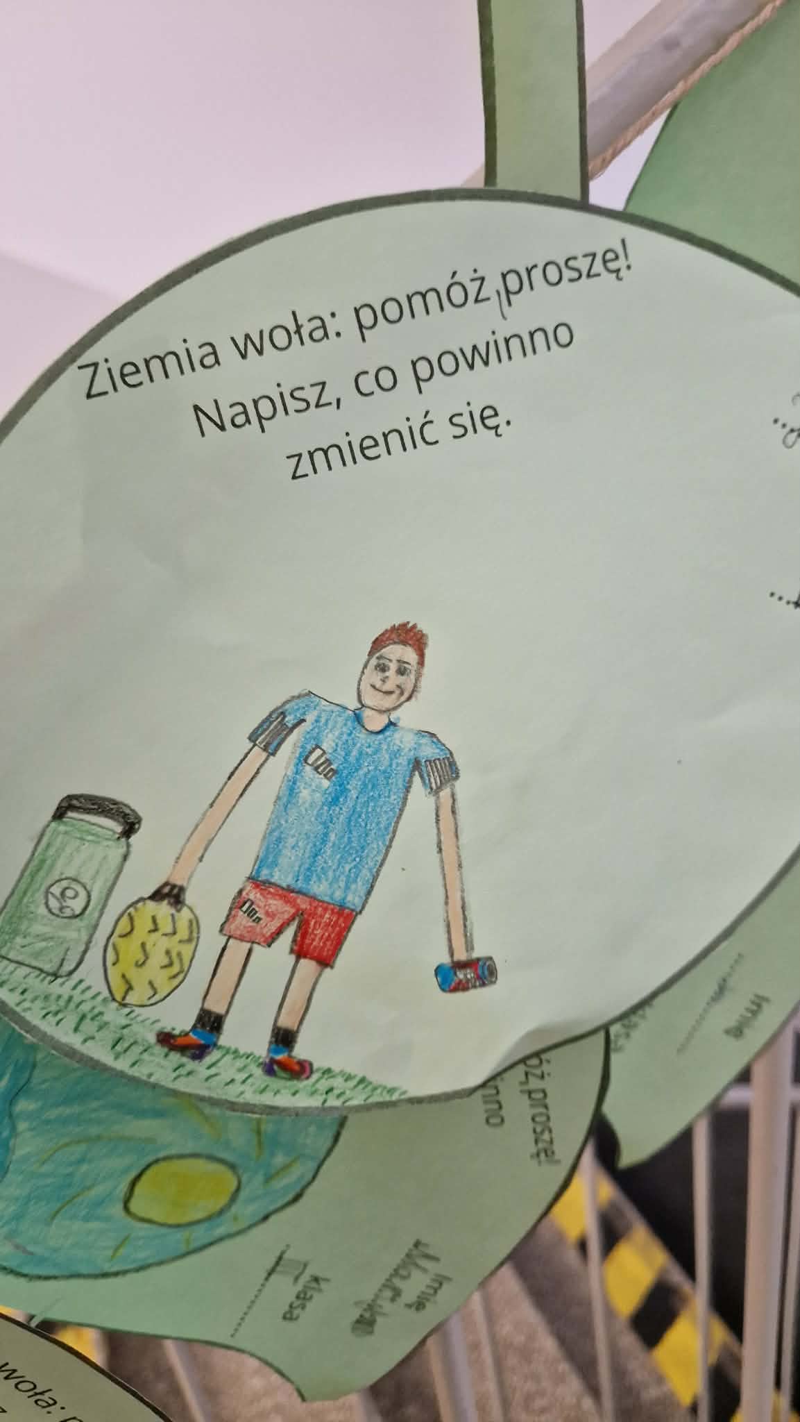 W całej szkole powstał również wyjątkowy, pełen kolorów „Łańcuch Przyjaciół Ziemi”. Przedszkolaki oraz uczniowie klas 1–8 zapisywali na papierowych liściach swoje pomysły, obietnice i rysunki przedstawiające działania, które mogą pomóc naszej planecie. Wszystkie liście połączono w długi łańcuch, który ozdobił szkolne korytarze i stał się symbolem wspólnej troski o środowisko.