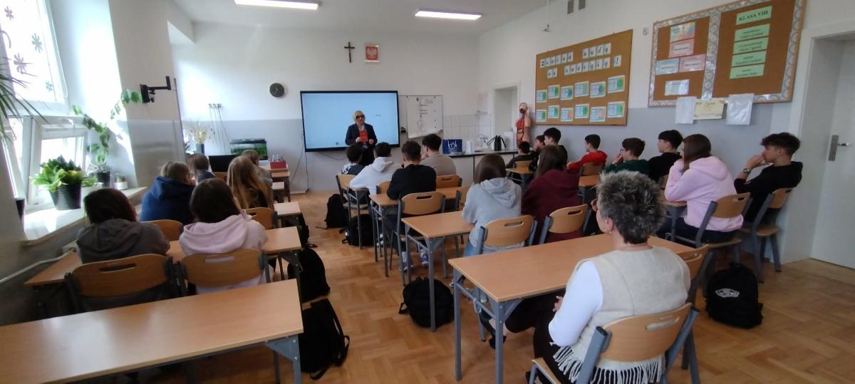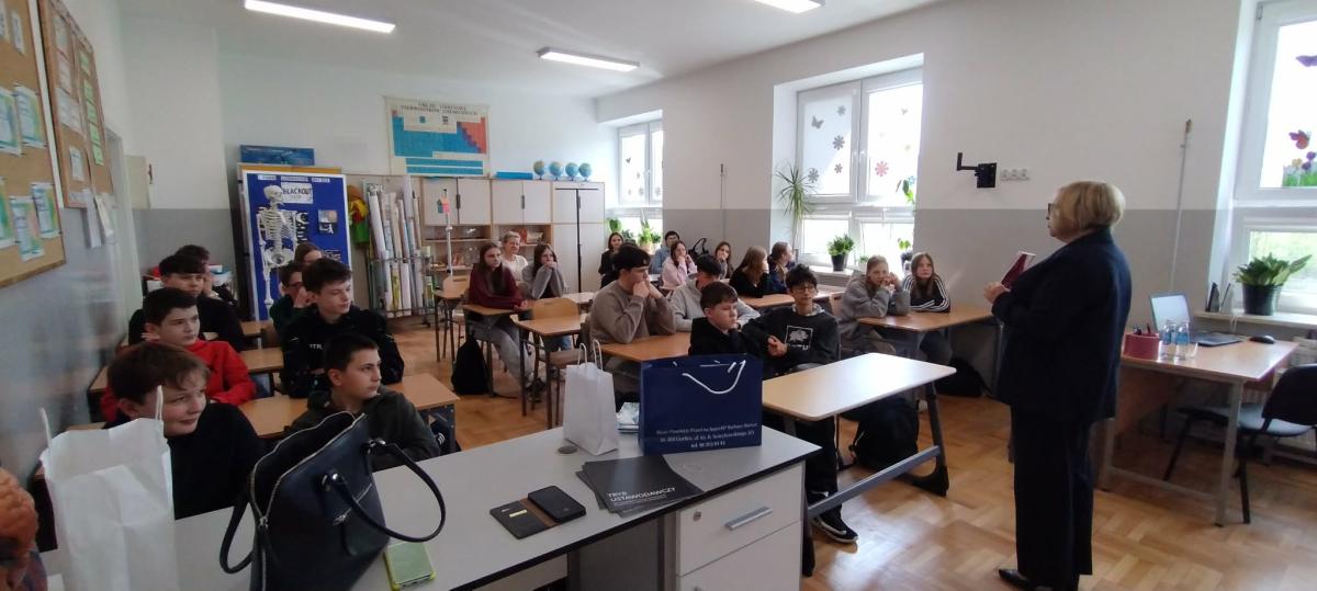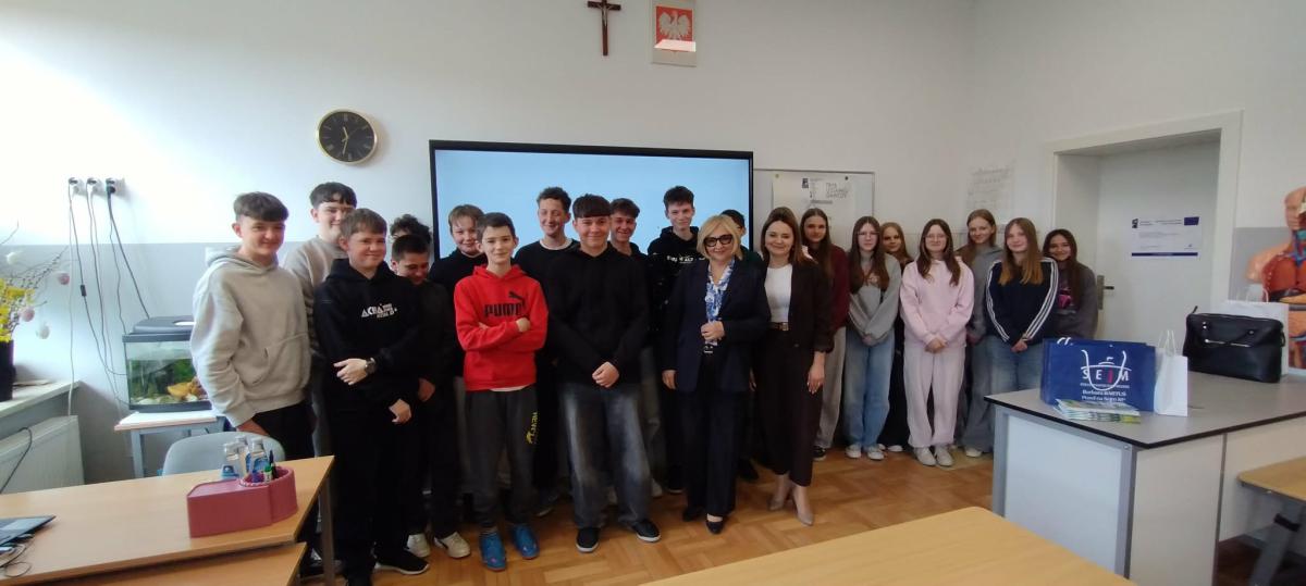W naszej szkole odbyło się wyjątkowe spotkanie z panią poseł Barbarą Bartuś, która poprowadziła lekcję wiedzy o społeczeństwie dla uczniów klas 7 i 8. Była to doskonała okazja, aby młodzież mogła poznać funkcjonowanie polskiego parlamentu z perspektywy osoby aktywnie uczestniczącej w jego pracach.